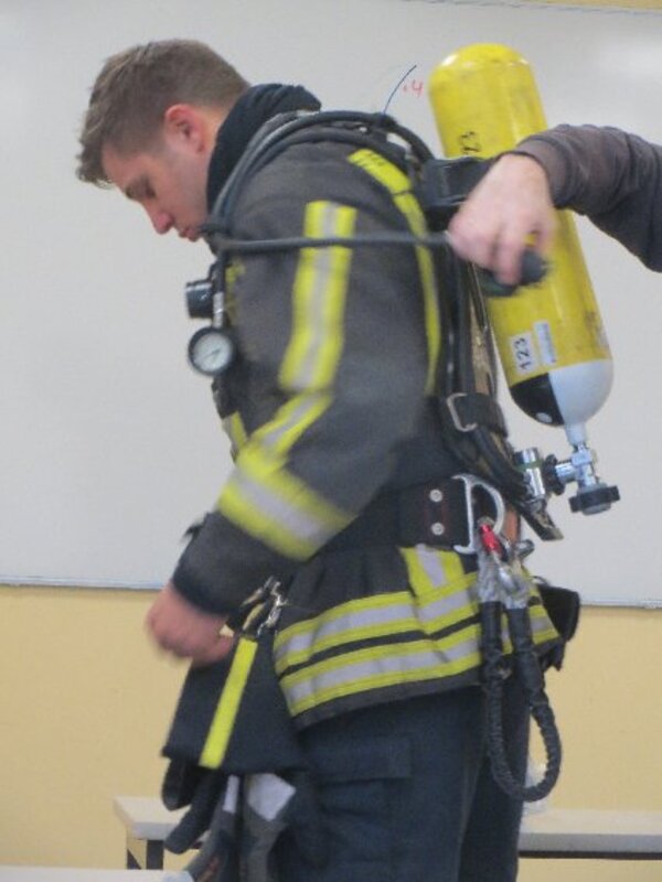 Neu war für die Kinder, dass Feuerwehrleute auch Mädchen für alles sind. Ihr Dienst hat 24 Stunden-Schichten, also Tag und Nacht. Dafür haben sie Ruheräume, Freizeiträume und einen Raum, wo sie schlafen können sowie eien Küche in der Feuerwache. Kochen, die Uniform waschen, die Fahrzeughalle ausfegen, all das machen die Feuerwehrleute selber.