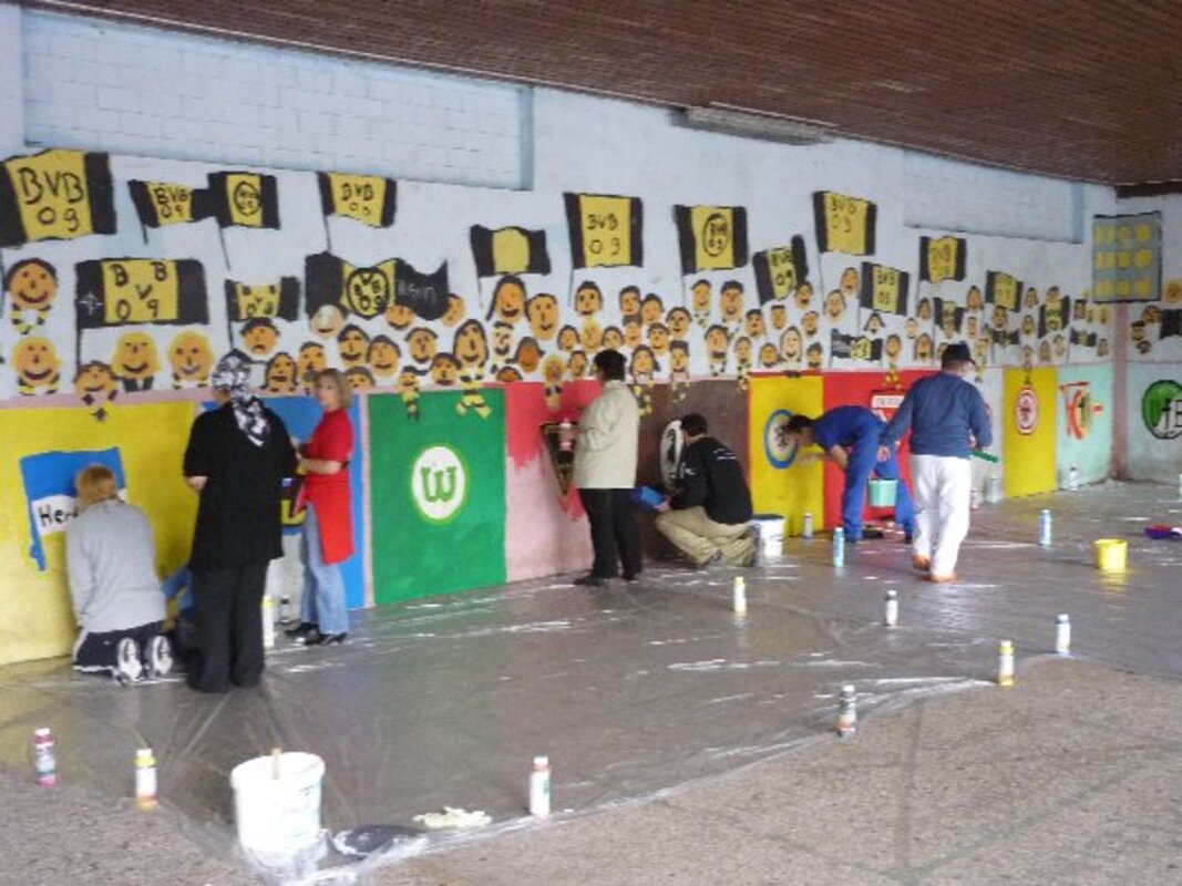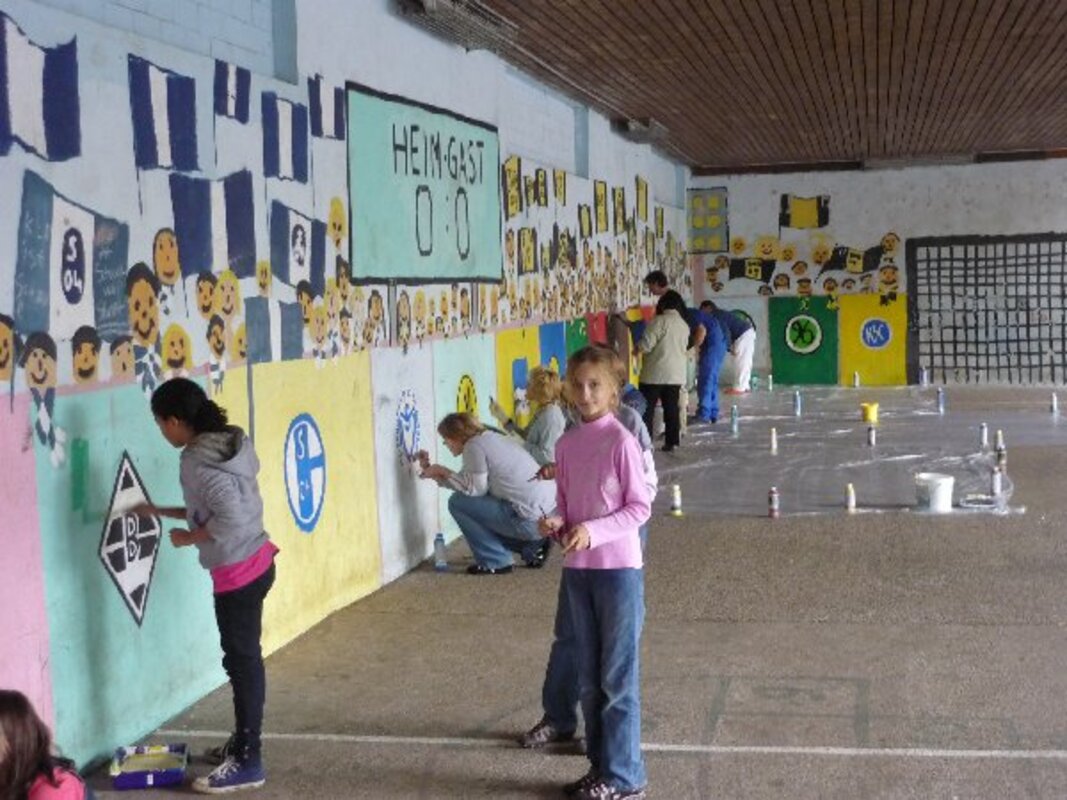Am letzten Septemberfreitag in 2010 strichen 20 Eltern mit Unterstützung einiger Kinder gemeinsam mit dem Schulleiter die Pausenhalle wieder neu. Nun strahlt das in der Pause und im Nachmittagsbereich beliebte Fußballstadion Arena Vierlinden wieder in frischem Glanz.
