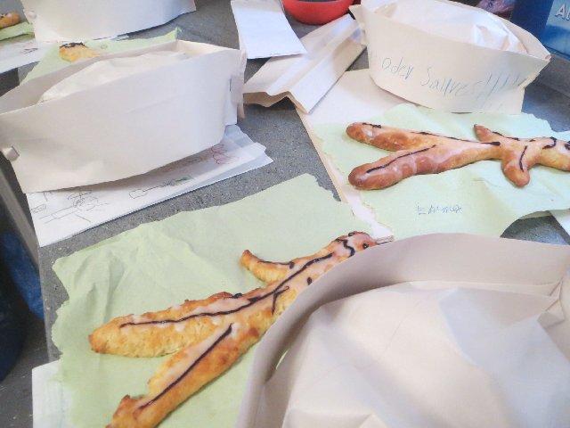 Nachmittags duftete es in den letzten Oktobertagen aus unserer Schulküche. Bei Akki wurden Krümelmonster und Skelette - "Keine Stutenkerle Herr Steuwer!" geknetet, mit Zuckerguss überstrichen, verziert und gebacken. Eine Bäckermütze mussten die Kinder als richtige Bäcker tragen. Selbstverständlich selbst gebastelt!