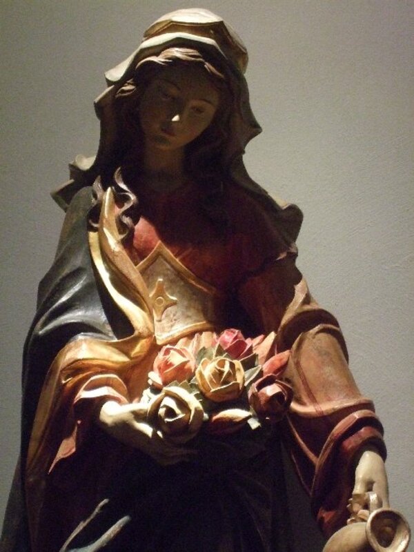Eine Holzfigur von Sankt Elisabeth ist auf einer Seite der Kirche zu sehen, auf der anderen Seite ist die heilige Barbara als Holzfigur zu finden. Sie war die Schutzheilige für die Bergleute. Viele Männer, die in Vierlinden arbeiteten, verdienten ihr Geld nämlich im Bergwerk.
