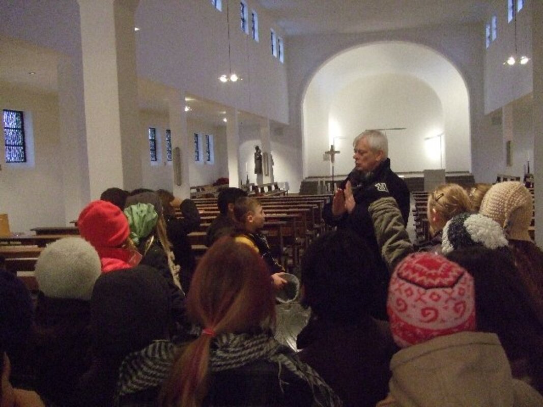 Am Freitagnachmittag öffnete Pfarrer Leenders für die Kulturforscherkinder die katholische Kirche St.Elisabeth. 30 Kinder hatten diesmal keinen langen Anfahrtweg, sondern konnten zu Fuß vom Schulhof zur Kirche gehen.