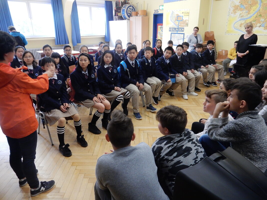 Am 9. und 10.Mai besuchten uns im dritten Schuljahr hintereinander 29 Schüler und Schülerinnen der Yucai Primary school aus Wuhan, China. Begleitet wurden die Kinder von drei Lehrerinnen, einer deutschsprachigen chinesischen Begleiterin und dem deutsch sprechenden chinesischen Busfahrer. An beiden Tagen nahmen die Kinder verteilt auf unsere 13 Schulklassen am Unterricht teil. Vor allem am Mathematikunterrricht waren die chinesischen Lehrerinnen interessiert.