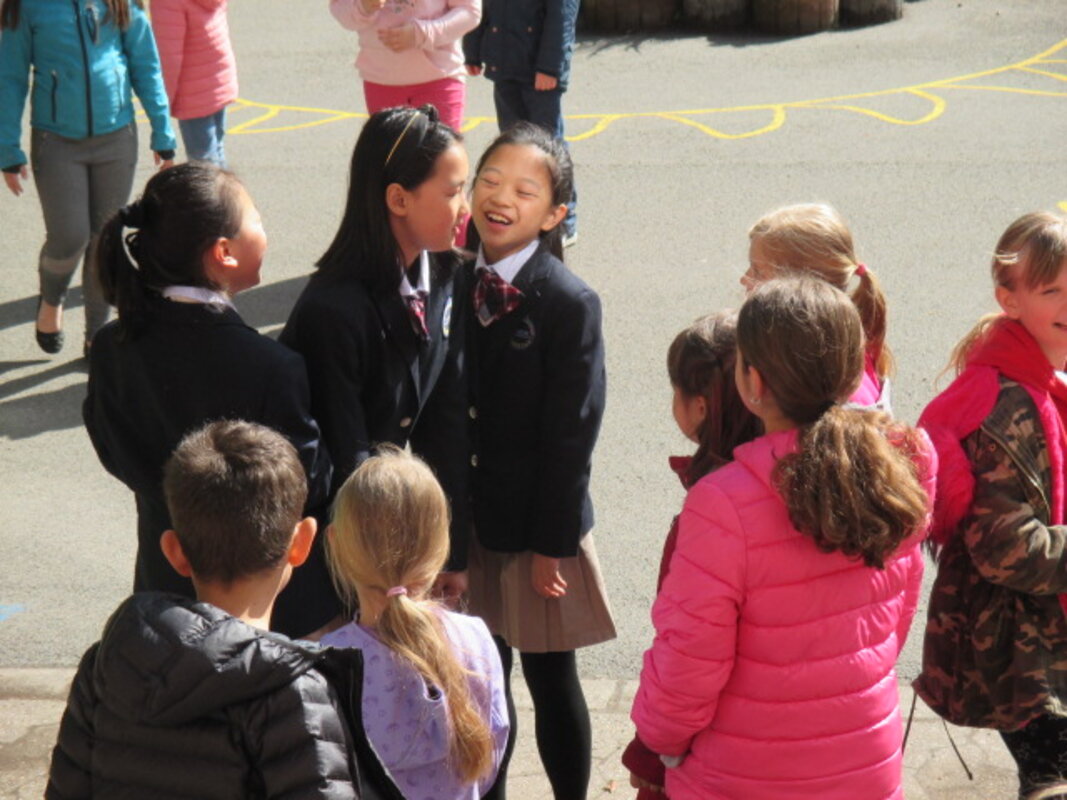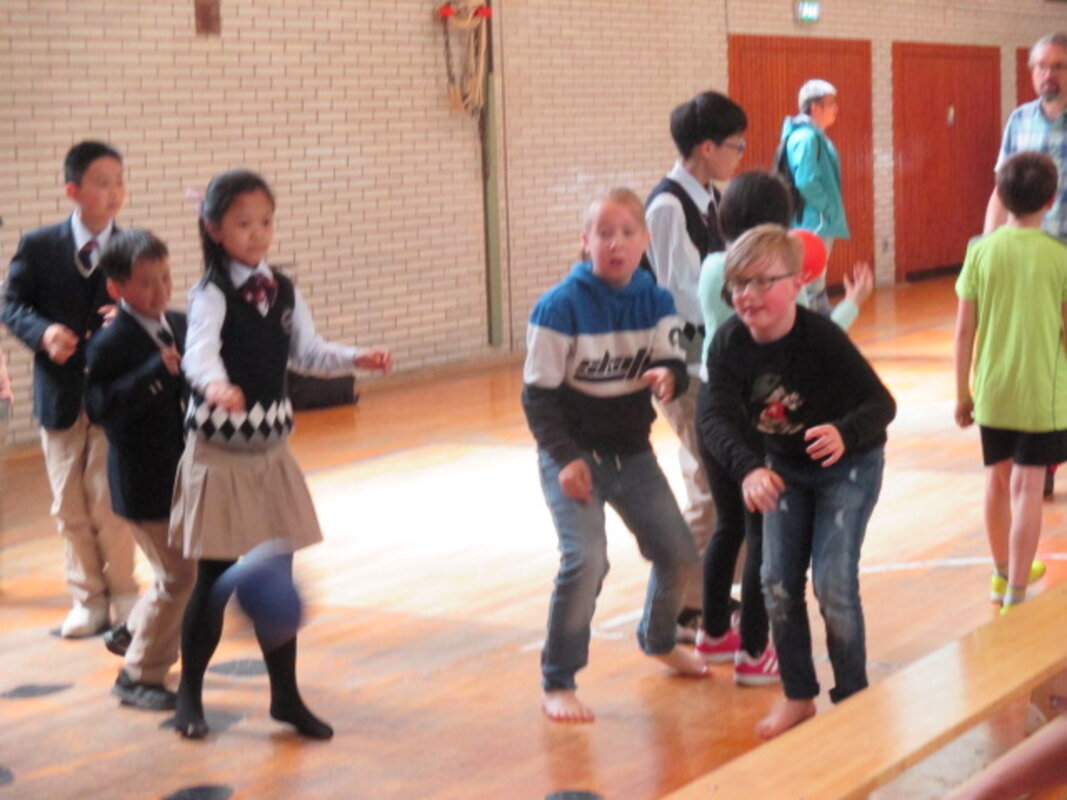Kinder sind offen für andere Kulturen, neugierig und schließen schnell Freundschaft auch wenn man nicht alles aussprechen kann. Viele unserer Kinder probierten es mit Englisch, machten vor oder baten die Lehrerinnen um Hilfe beim Übersetzen. In den Pausen auf dem Schulhof, in der gemeinsamen Sportstunde mit Kindern aus einem 4.Schuljahr verstanden sichdie Kinder schnell.