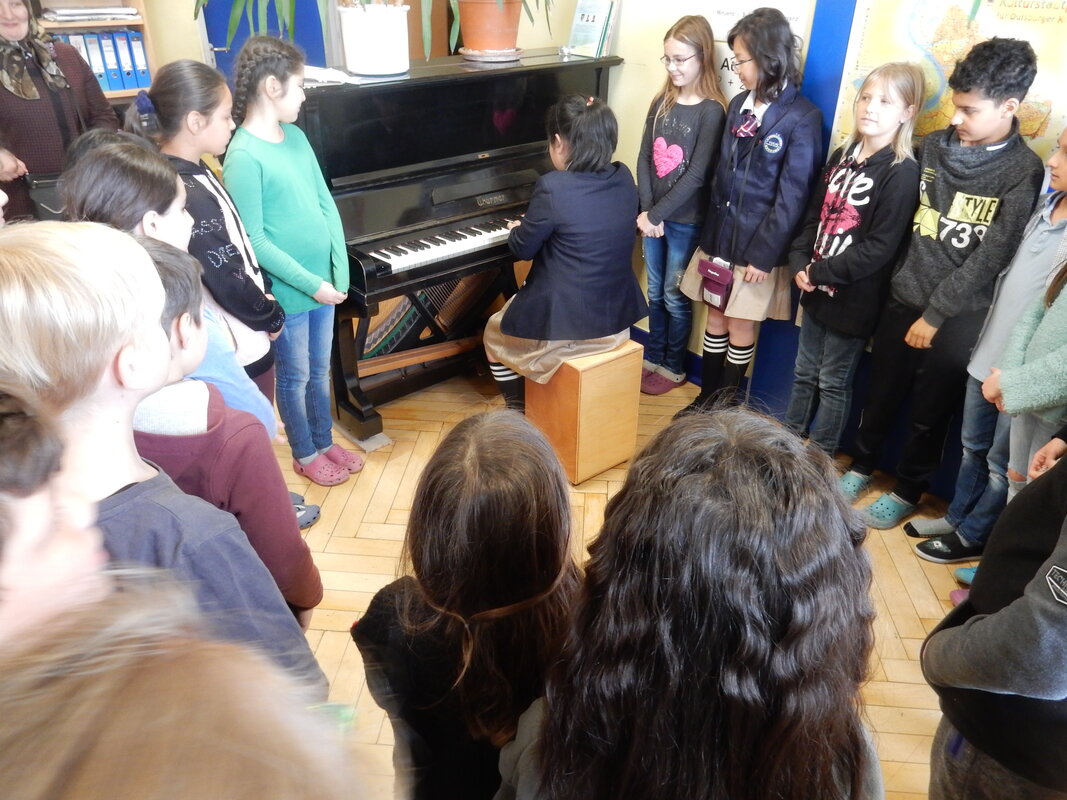 Der 11.Geburtstag eines chinesischen Mädchens wurde mit einer Klasse gefeiert, bei der Begrüßung staunten unsere Kinder über die Klavierkünste eines chinesischen Mädchens wie umgekehrt die Gäste sich vom Gesang unserer Kinder beeindruckt zeigten. Die Freude aufeinander, das ehrliche Anerkennen deer Leistungen anderer Kinder prägten die Atmosphäre der beiden Schultage.