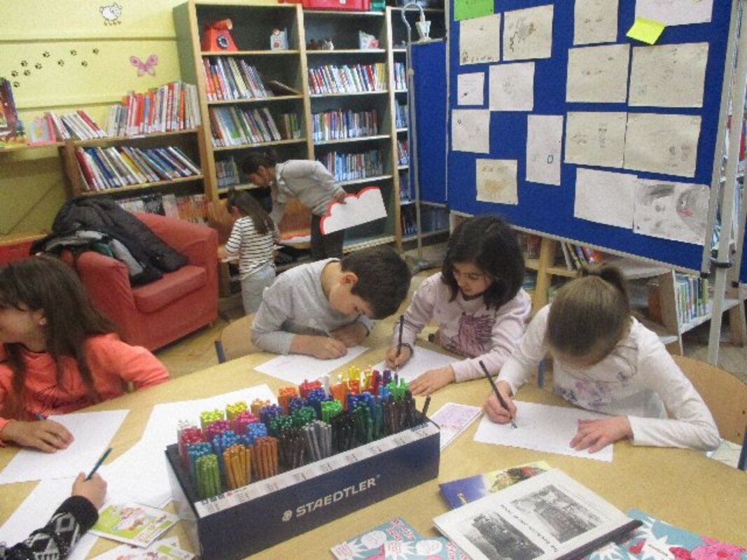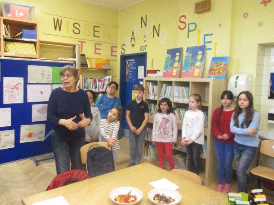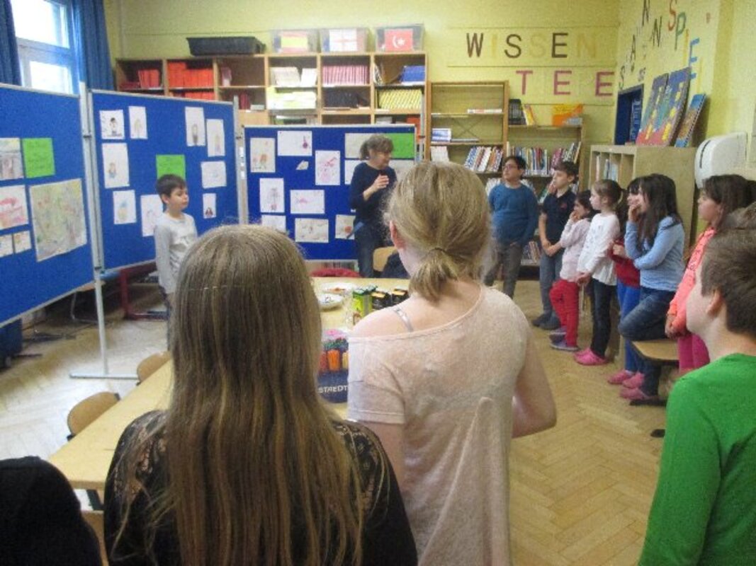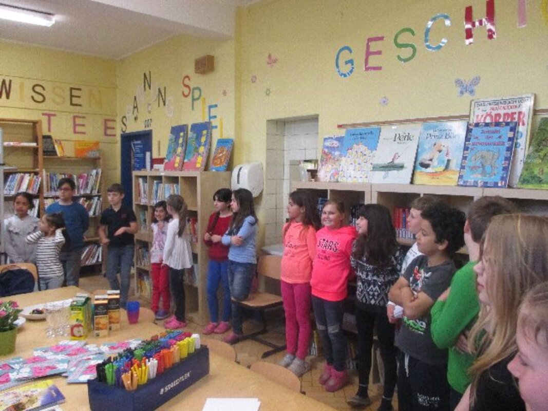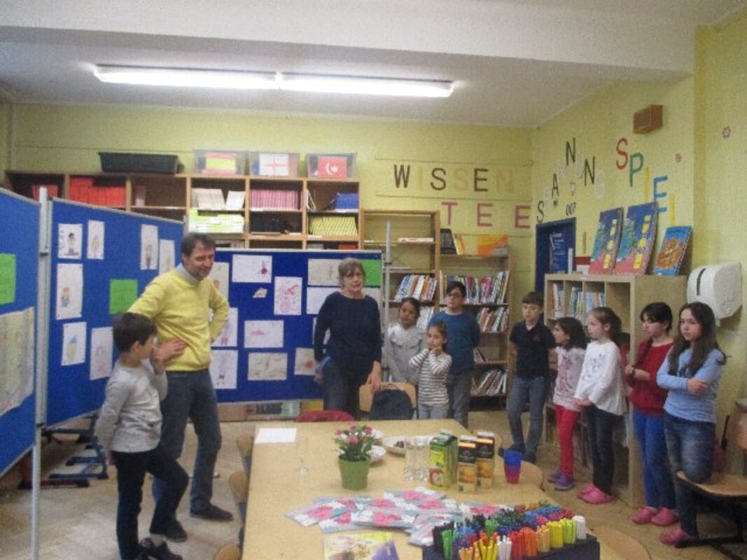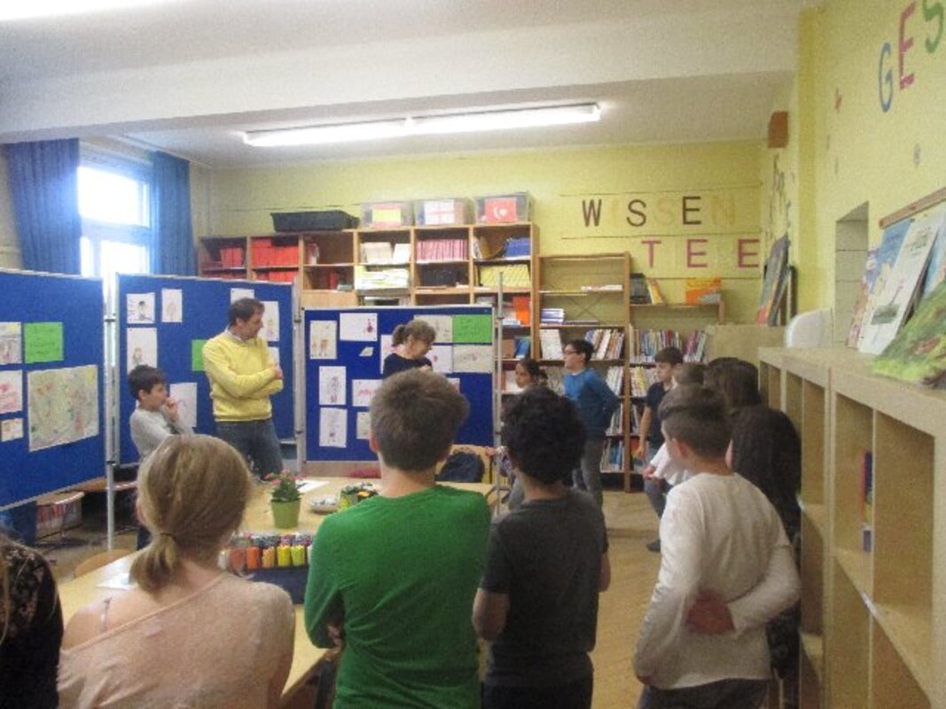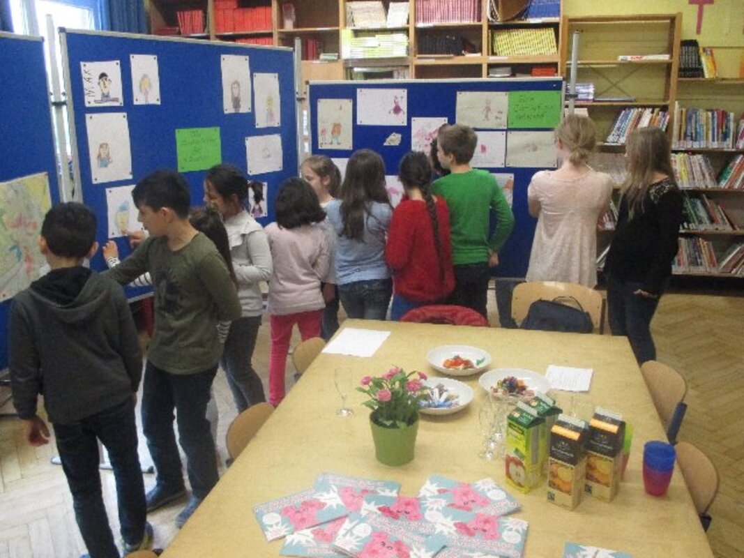 Die Ausstellung ist bewusst am Tag vor dem Elternsprechtag eröffnet worden. So können Eltern beim Elternsprechtag vor oder nach den Gesprächen einen Blick in die geöffnete Bücherei wagen und sich von den Kindern durch die Ausstellung führen lassen.