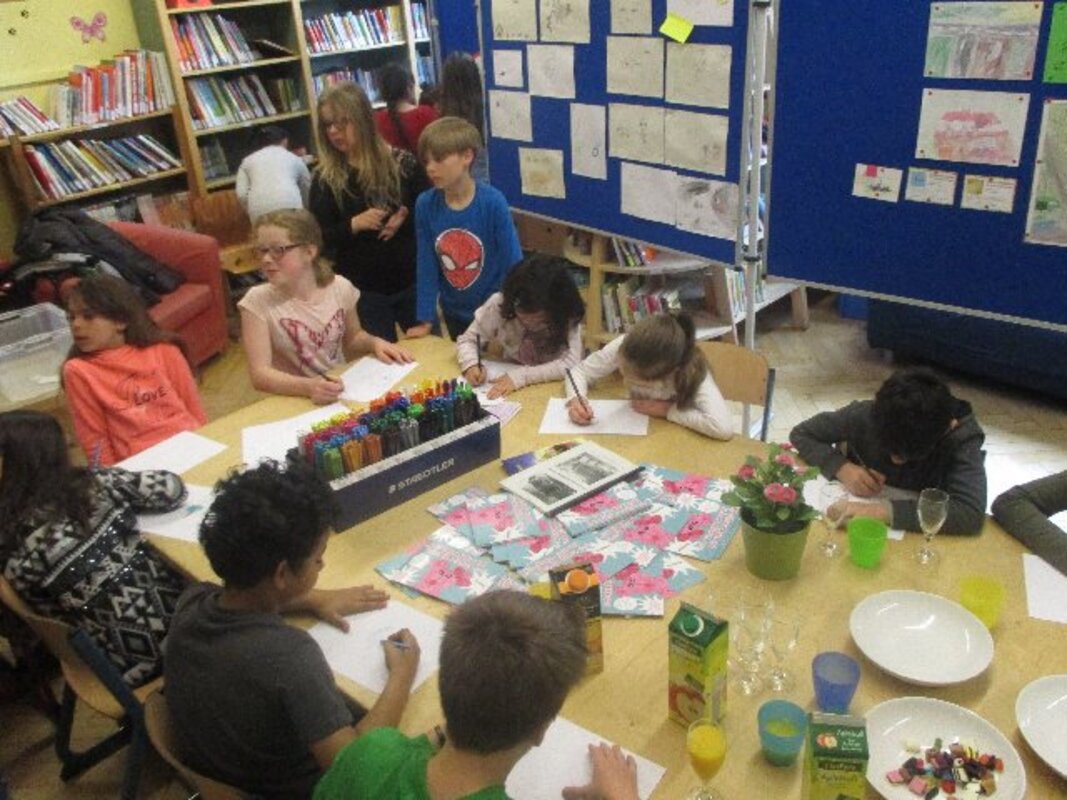 Vor allem durften die Kinder einen Workshop mit ihren Gästen durchführen und weitere Abenteuer von Rosalinde erfinden. Roslinde ist nämlich die Figur, die sich die Kinder für Abenteuer ausgesucht hatten, die in und rund um Vierlinden spielen.