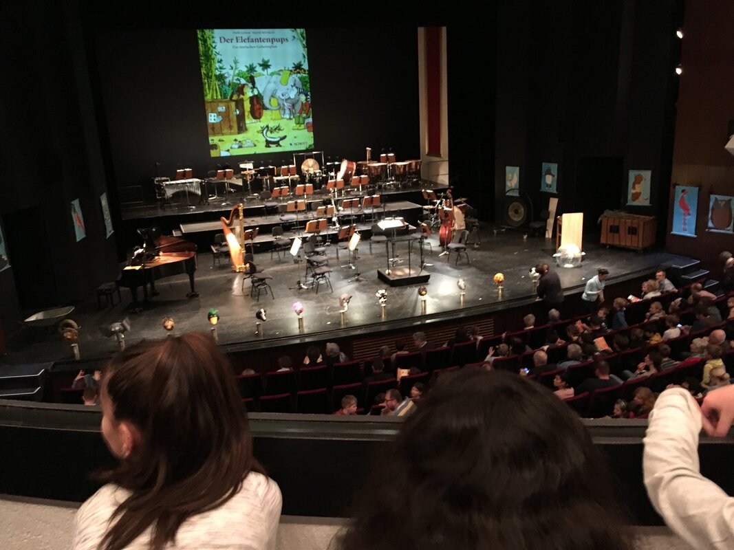 Am Sonntag, den 10.März gaben die Duisburger Philharmoniker ein buntes Familienkonzert zum Kinderbuch "Der Elefantenpups - ein tierischer Geheimplan" im Stadttheater. Unterstützt wurden die Duisburger Philharmoniker durch zwei Duisburger Kindergärten, unter anderem dem Familienzentrum Vierlinden (früher Kindergarten Kinderburg). Manches unserer Kulturforscherkinder, die das Konzert aus der Reihe Klasse.Klassik besuchten, erkannte Erzieherinnen und Geschwisterkinder wieder.