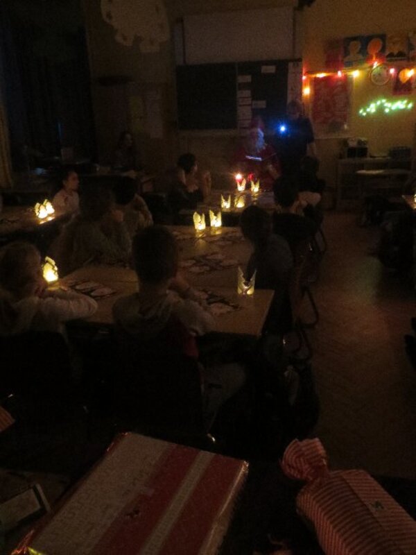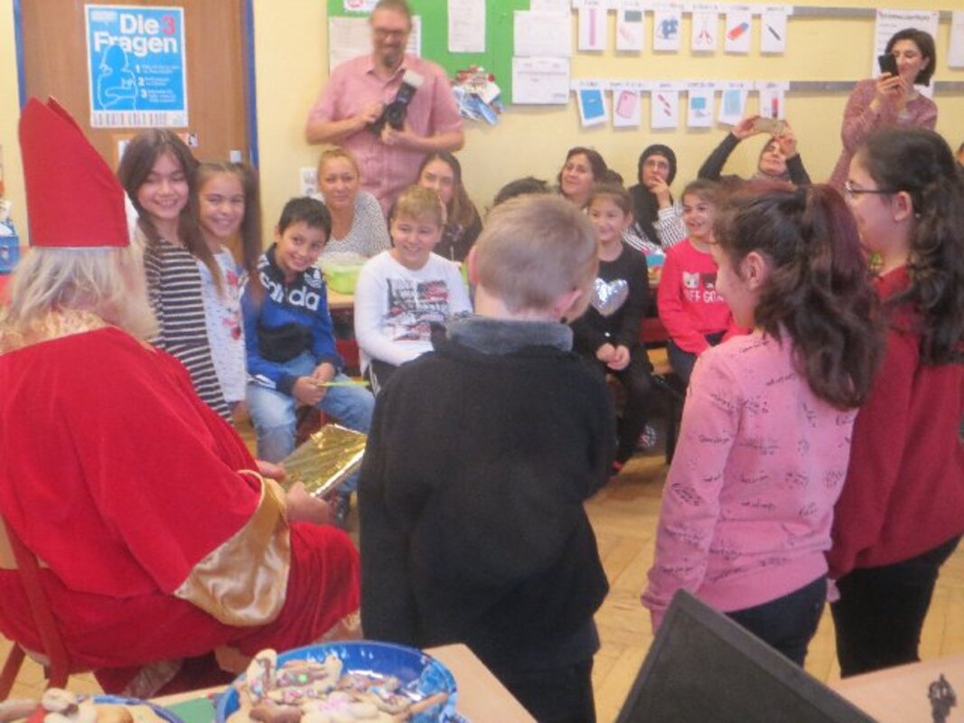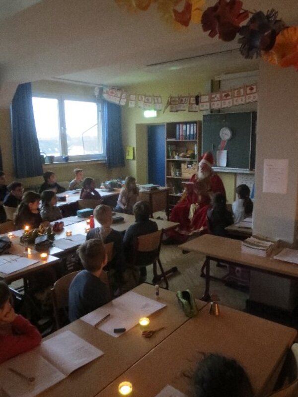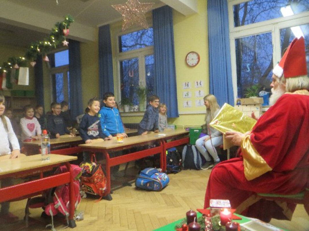 Zum Abschied bescherte der Nikolaus jedes Kind einzeln mit einem Säckchen volelr Schokolade, Mandarinen, Äpfel und Nüsse. Ein bisschen Wehmut war nur bei den Viertklässlern zu spüren. Für sie war es der letzte Besuch des Nikolaus in einer familiären Klassenatmosphäre.