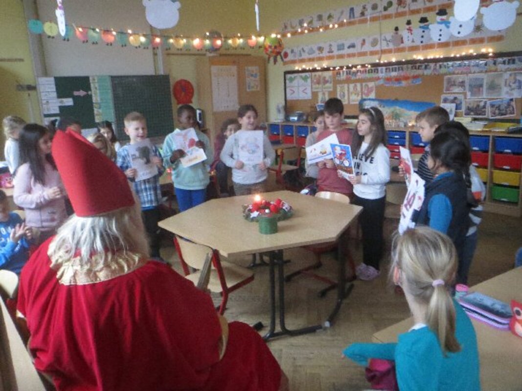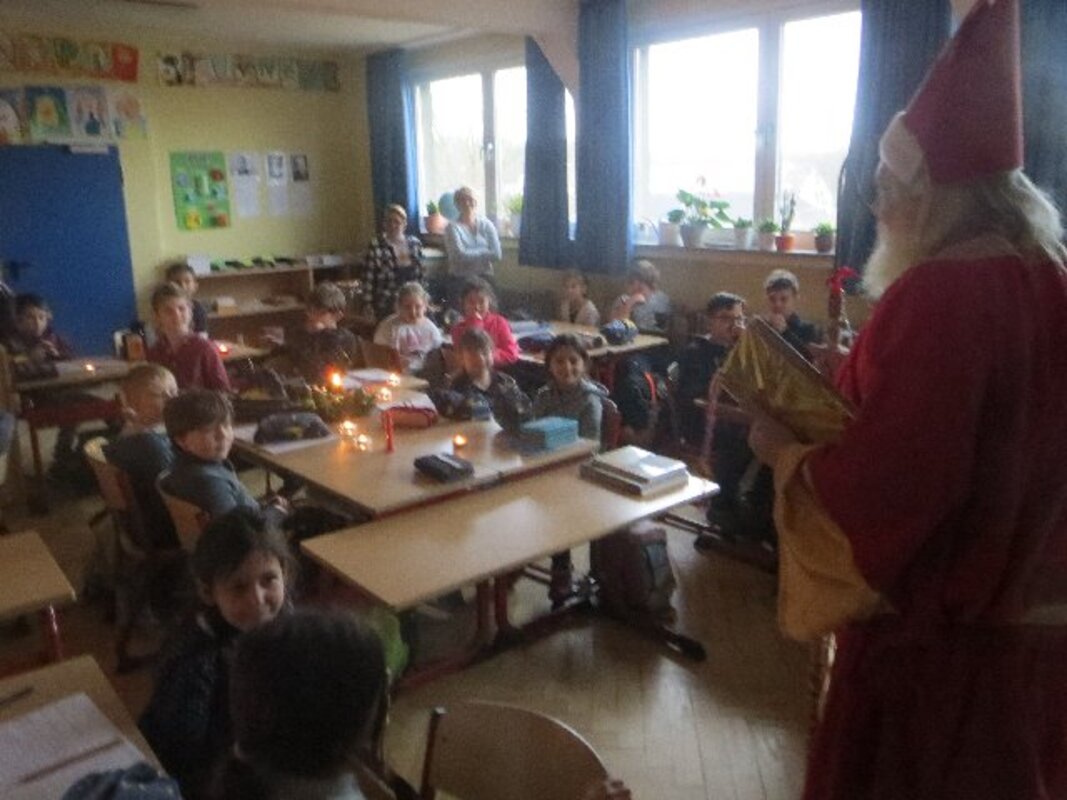 Am Nikolaustag besuchte der Nikolaus wieder alle Schulklassen. Die Kinder hatten fleißig Gedichte und Lieder geübt und hießen den Nikolaus willkommen.