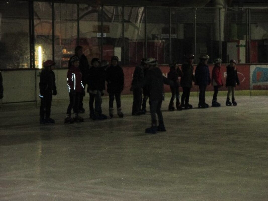 Das Einsammeln des Geldes für Busfahrt und Schlittschuhausleihe macht uns Lehrern etliche Mühe, die Kosten für die Eltern sind überschaubar, müssen aber auch erst mal bezahlt werden (por Woche 2,50 Euro). Die Kinder danken es uns mit ihrer Begeisterung für das neue Angebot.