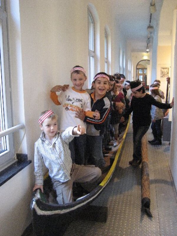 Die Kinder durften in einen alten Einbaum klettern, die Schiffglocke läuten und sich die vielen kleinen und großen Schiffsmodelle anschauen.