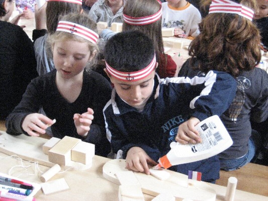 Dann wurde aber auch praktisch gewerkelt, gebastelt und gemalt. Stolz kamen die kleinen Matrosen vom Ausflug zurück. Mit einem Matrosenband um die Stirn und einem selbst gebastelten Holzschiff.