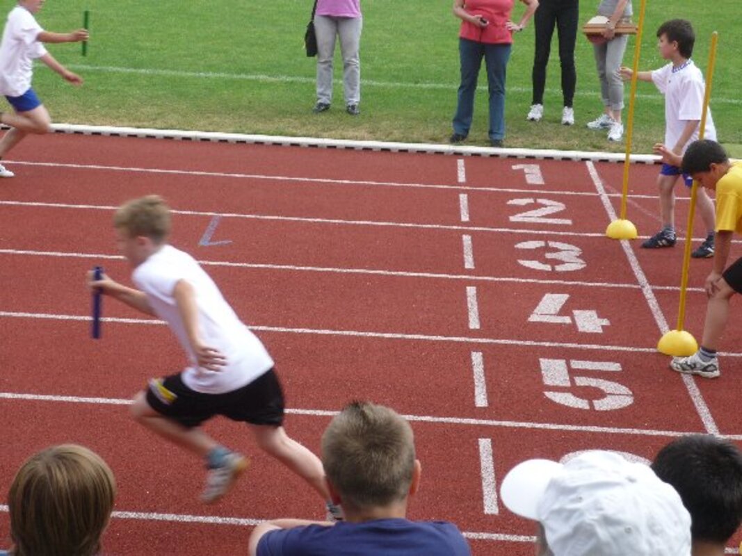 Bei den Staffelwettbewerben waren unsere Jungen erheblich erfolgreicher. Da erreichten sie einen 4.Platz. Hätten die Mädchen beim letzten Staffelwechsel den Staffelstab genauso sicher weitergegeben wie die Jungen, sie hätten einen ähnlich guten Platz erreicht. So reichte es denn "nur" für einen 9.Platz.