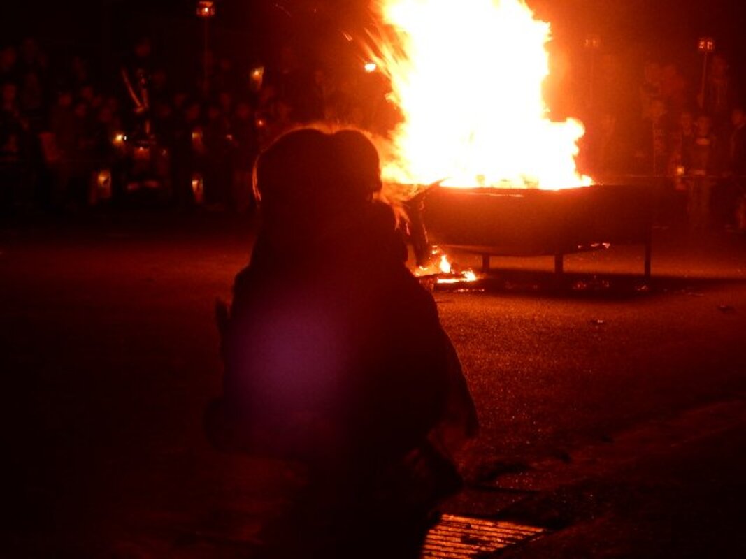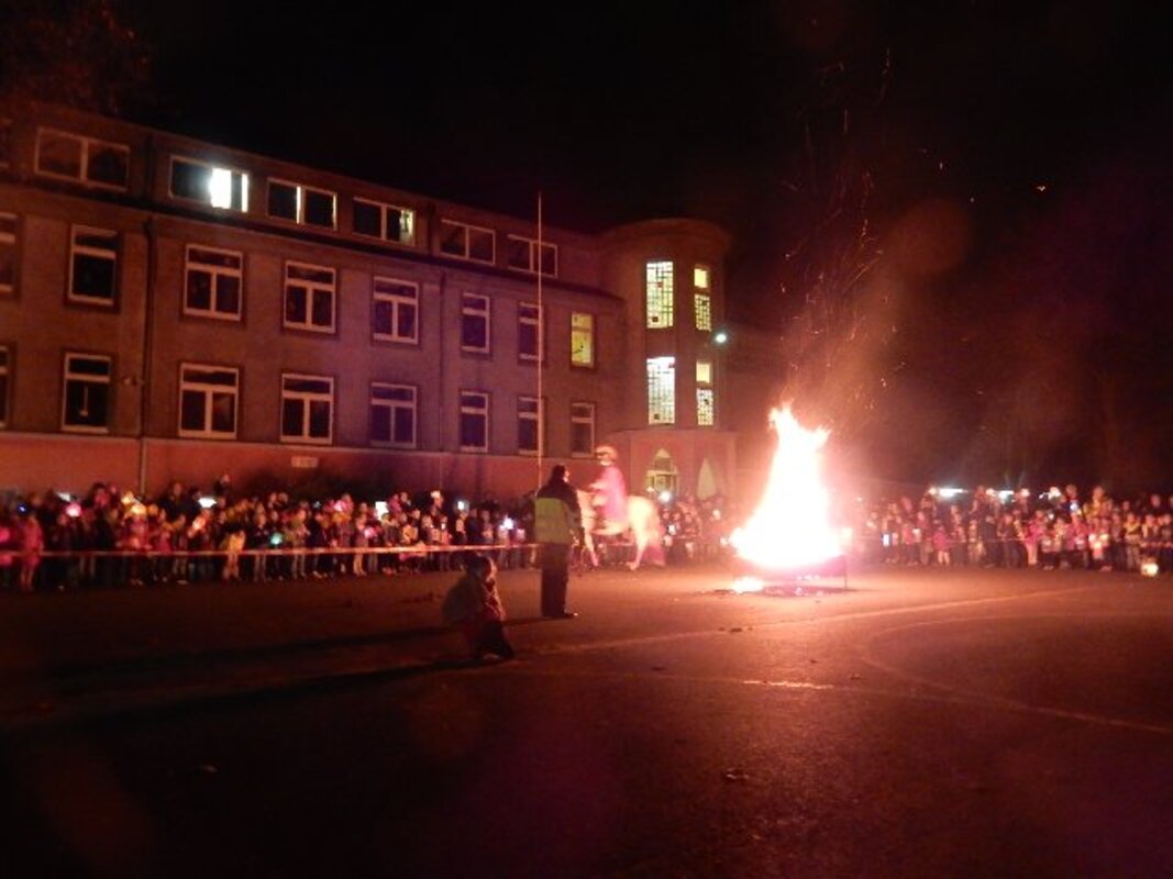 Nach der Mantelteilung um das Martinsfeuer auf dem Schulhof ging es für die Schulkinder in die Klassen, um sich beim Kinderpunsch zu stärken und den Stutenkerl abzuholen.
