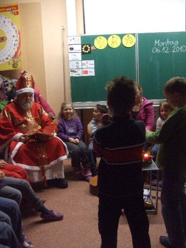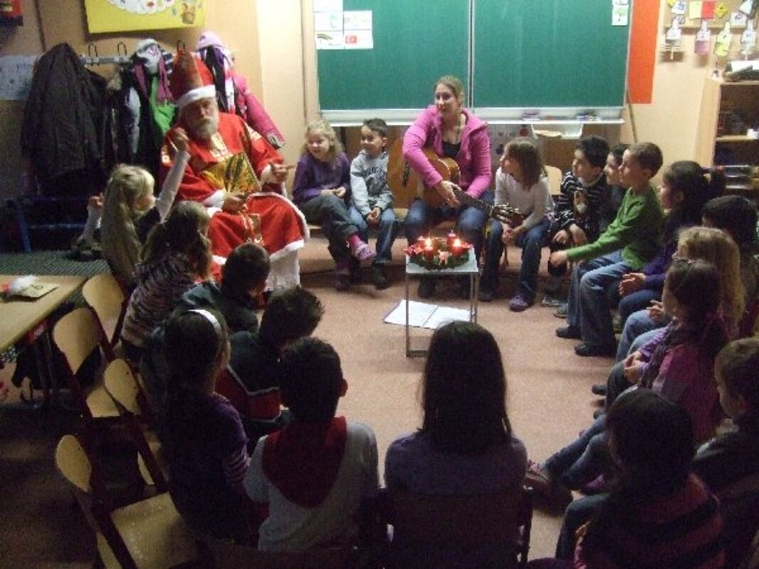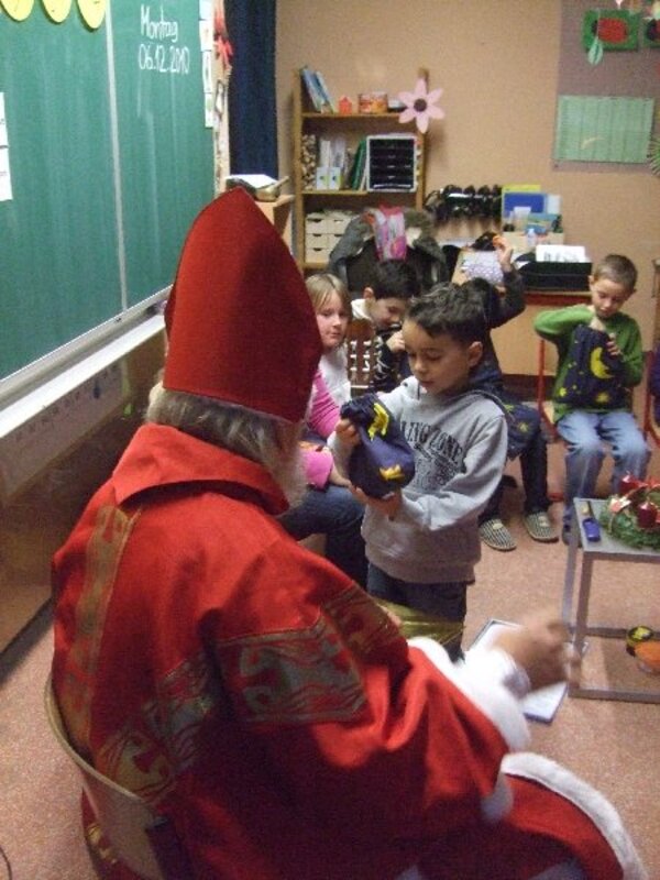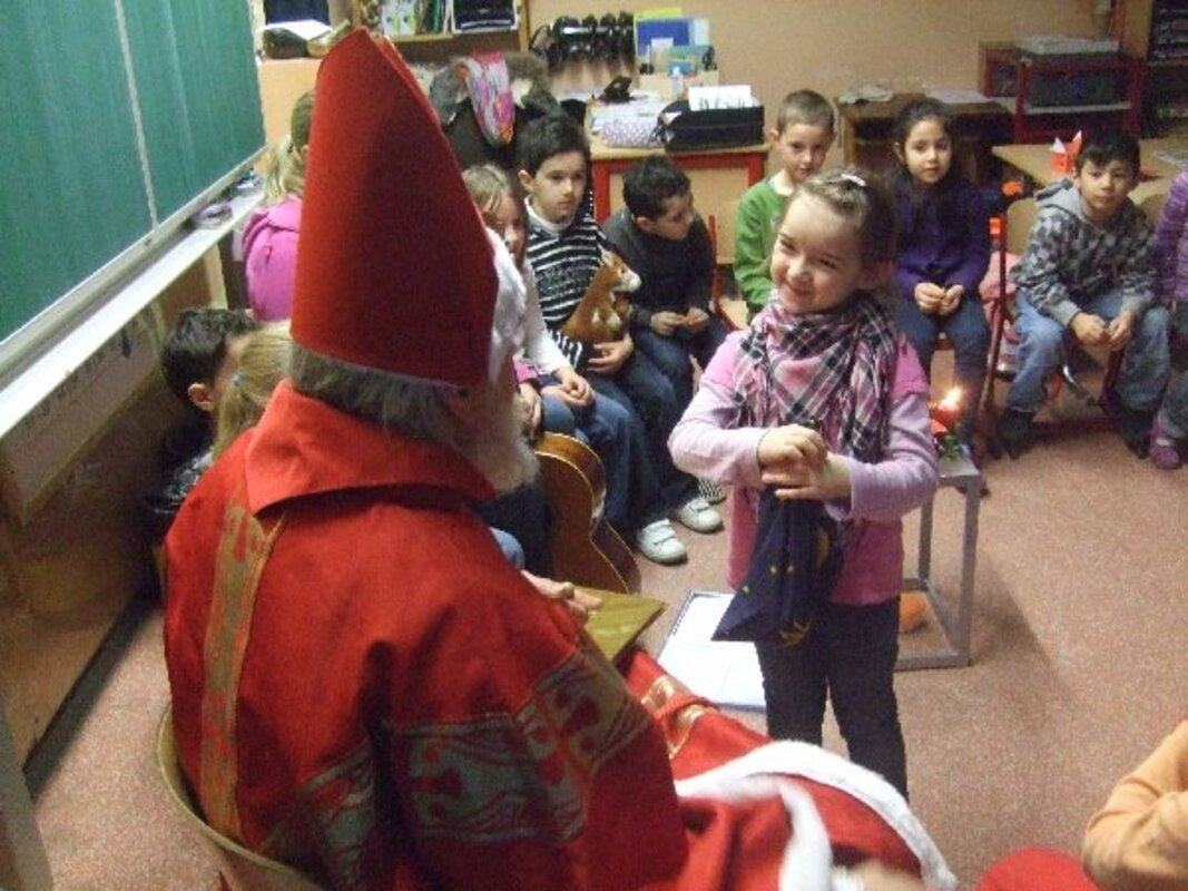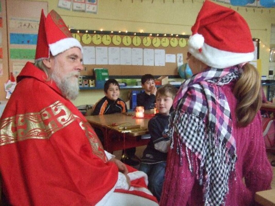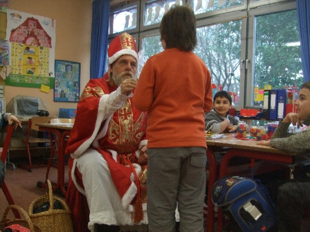 Jedes Jahr kommt der Nikolaus in unsere Schule und besucht Klasse für Klasse. Die Kinder haben sich in ihren geschmückten Klassenräumen natürlich auf den Besuch vorbereitet. Da werden Laternen selbst gebastelt, die Fenster und Tische geschmückt, Lieder und Gedichte auswendig gelernt.