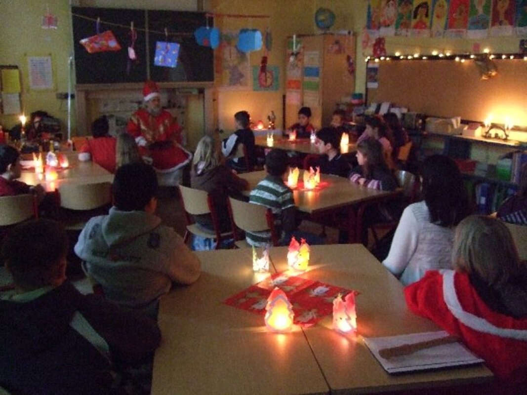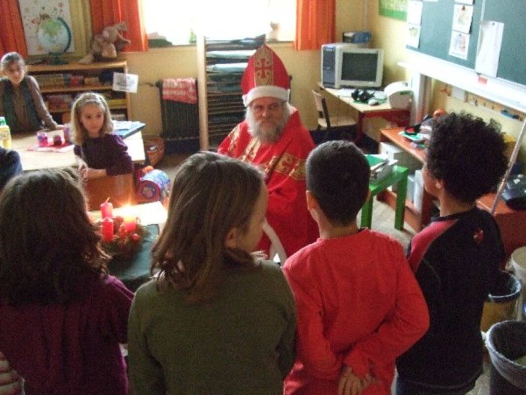 Wir jedes Jahr hatte der Nikolaus am 5.12.2008 alle Hände voll zu tun. Er besuchte nach und nach alle 13 Klassen. Die Kinder hatten wieder fleißig die Fenster geschmückt, Tischlaternen gebastelt, Gedichte und Lieder geübt. Von den Erstklässlern bis zu den ganz Großen in den 4.Klassen ließen sich die Kinder wieder vom Zauber des Nikolaustages anstecken.