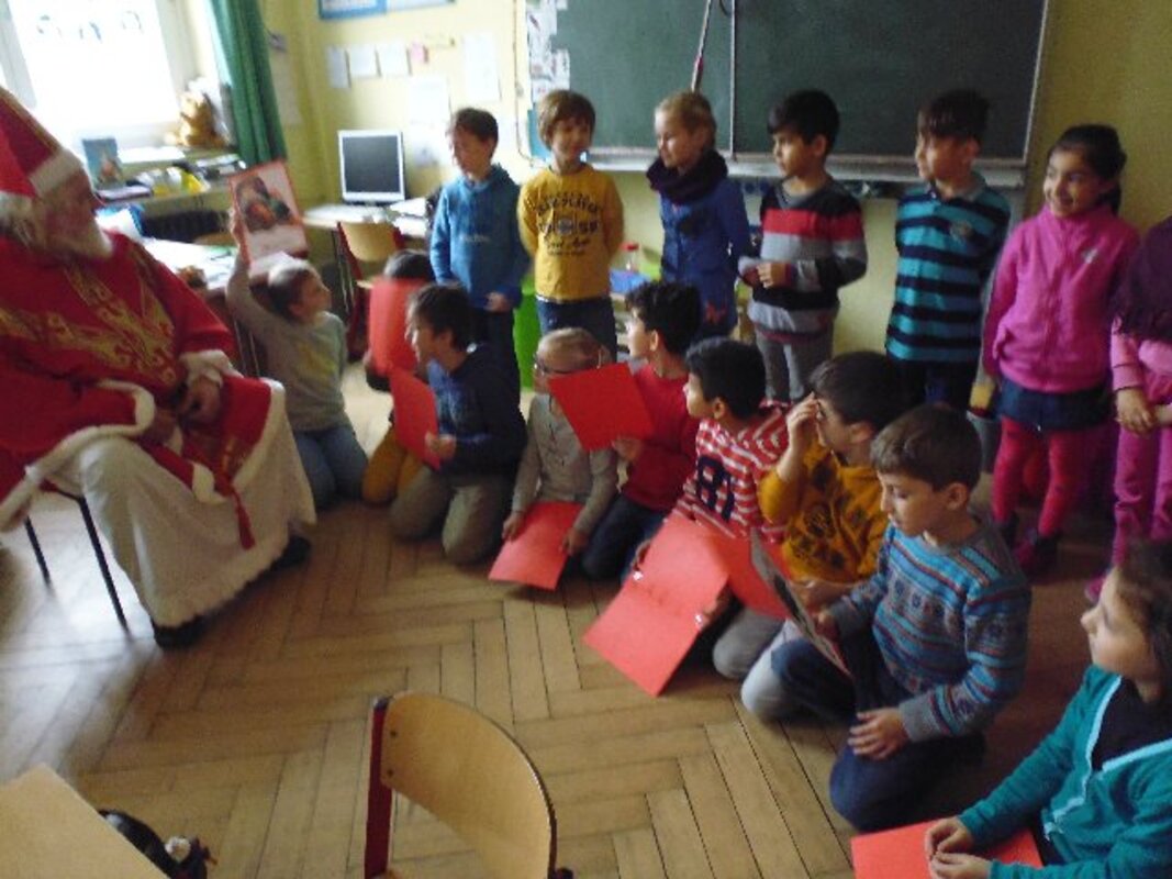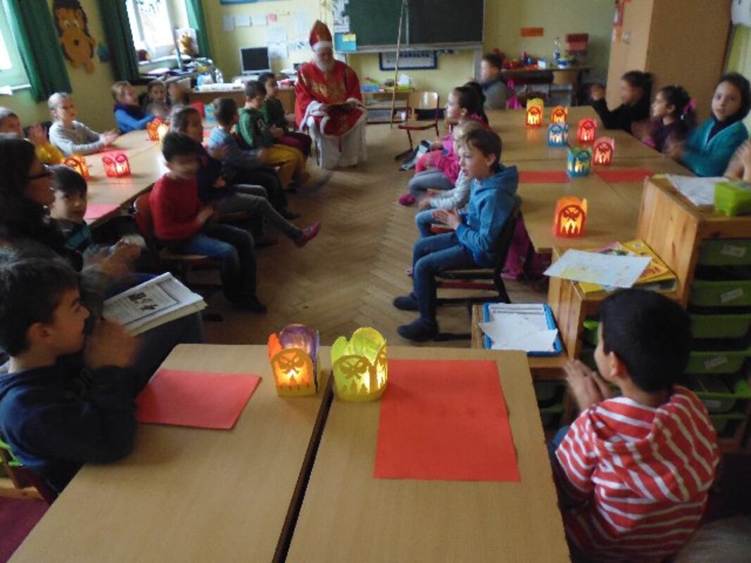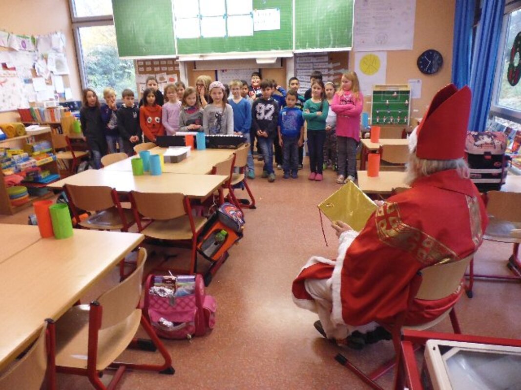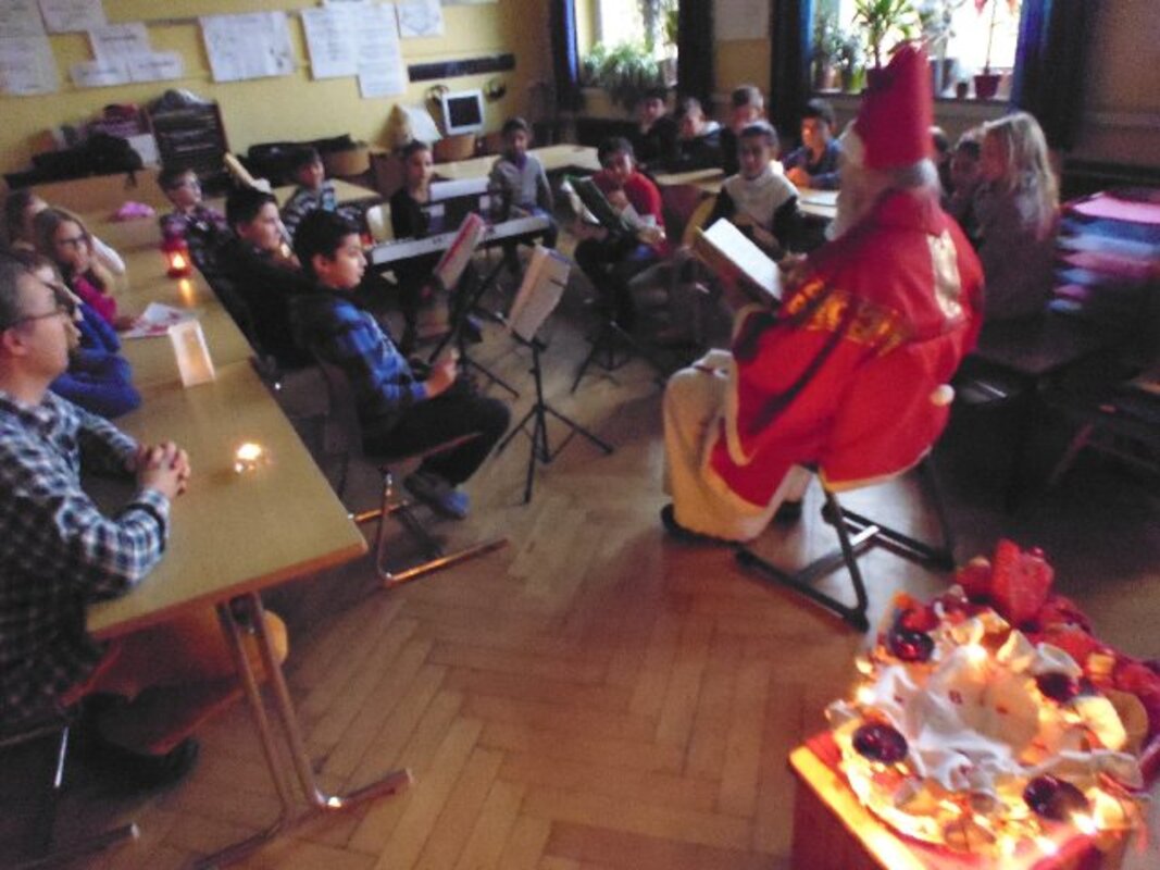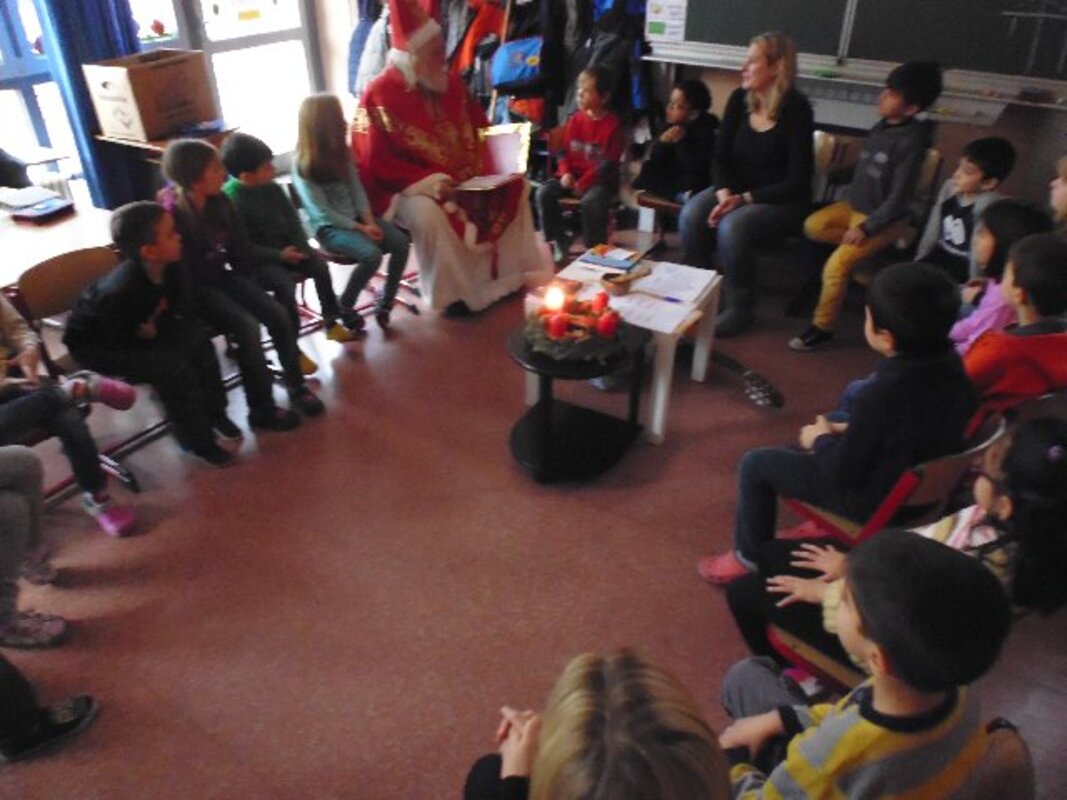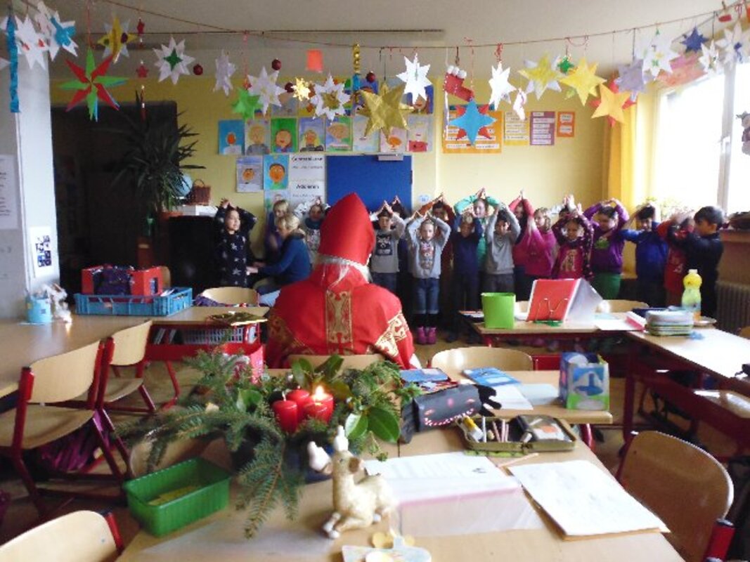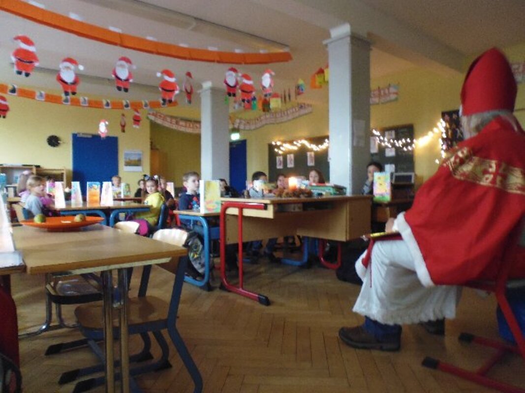 Immer wenn der Nikolaus uns besucht, dann herrscht eine besondere Stimmung im Schulhaus. Es riecht nach frisch gebackenen Plätzchen, in den Klassen sind die Fenster geschmückt, haben die Kinder ihre Adventskalender und Tischlaternchen gebastelt und für den Besuch des Nikolauses wurden Lieder gerobt und Gedichte auswendig gelernt.