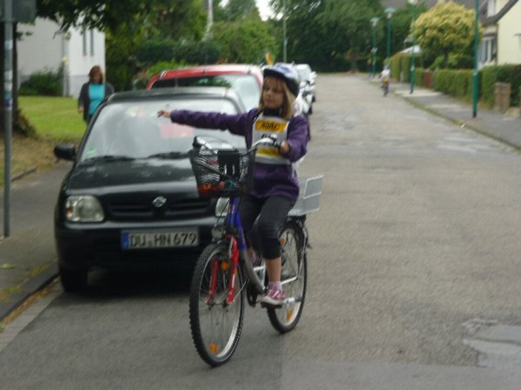 Zum vorbildlichen Fahrradfahren gehört natürlich auch der passende Fahrradhelm. Ohne Helm durften die Kinder aus Sicherheitsgründen nicht an der Prüfung teilnehmen. Daran hielten sich erfreulicherweise so gut wie alle Kinder und deren Eltern.