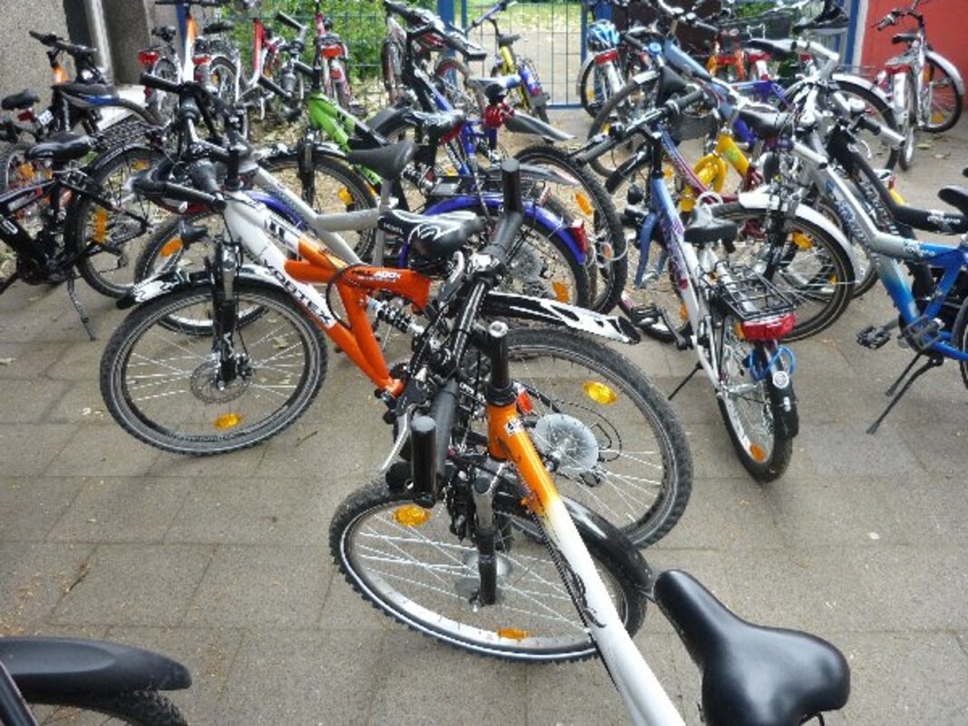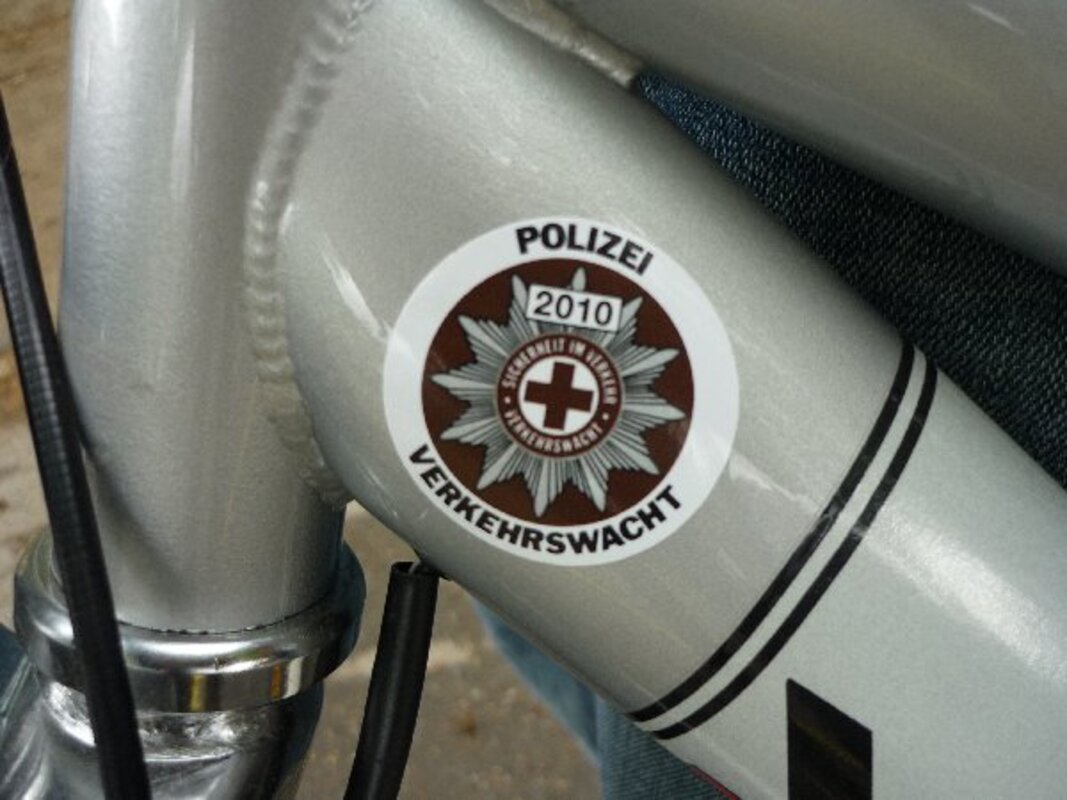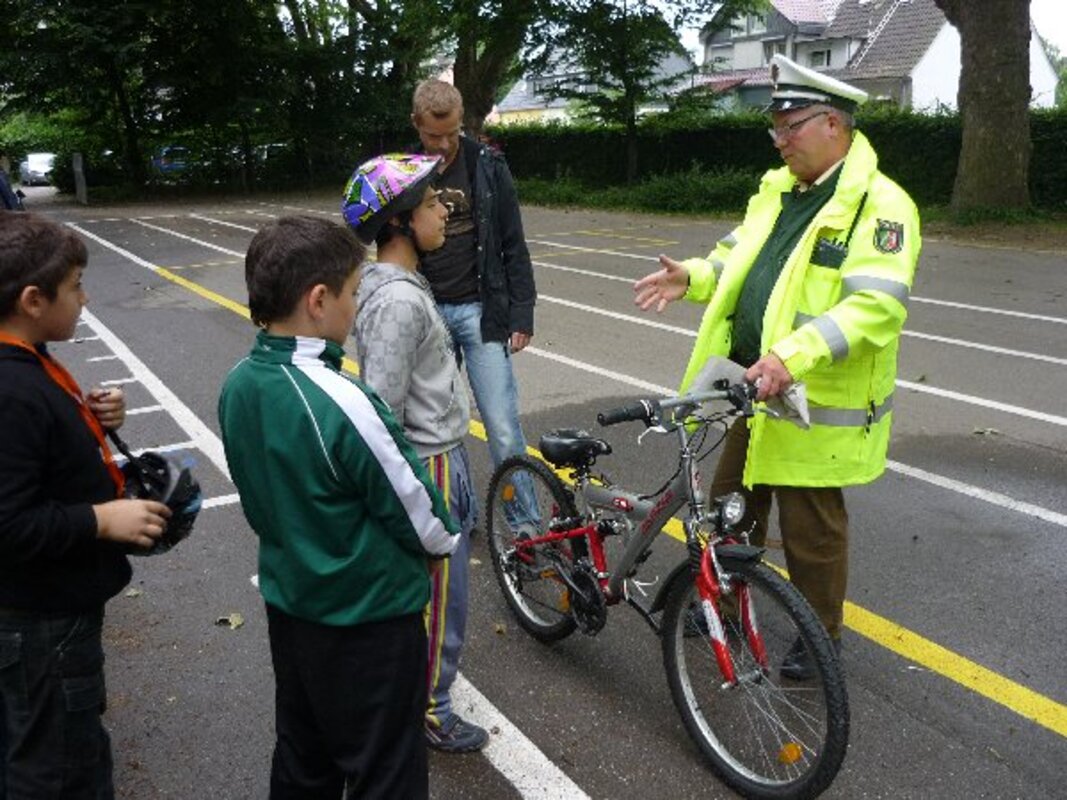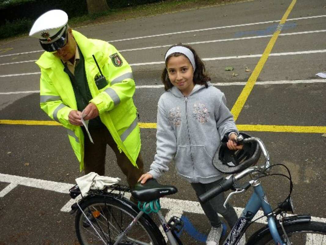 Wie in jedem Jahr prüfte die Verkehrspolizei auch die Fahrräder der Kinder auf ihre Verkehrssicherheit. Einige wenige Räder erhielten noch keine Plakette und müssen nachgerüstet werden.
