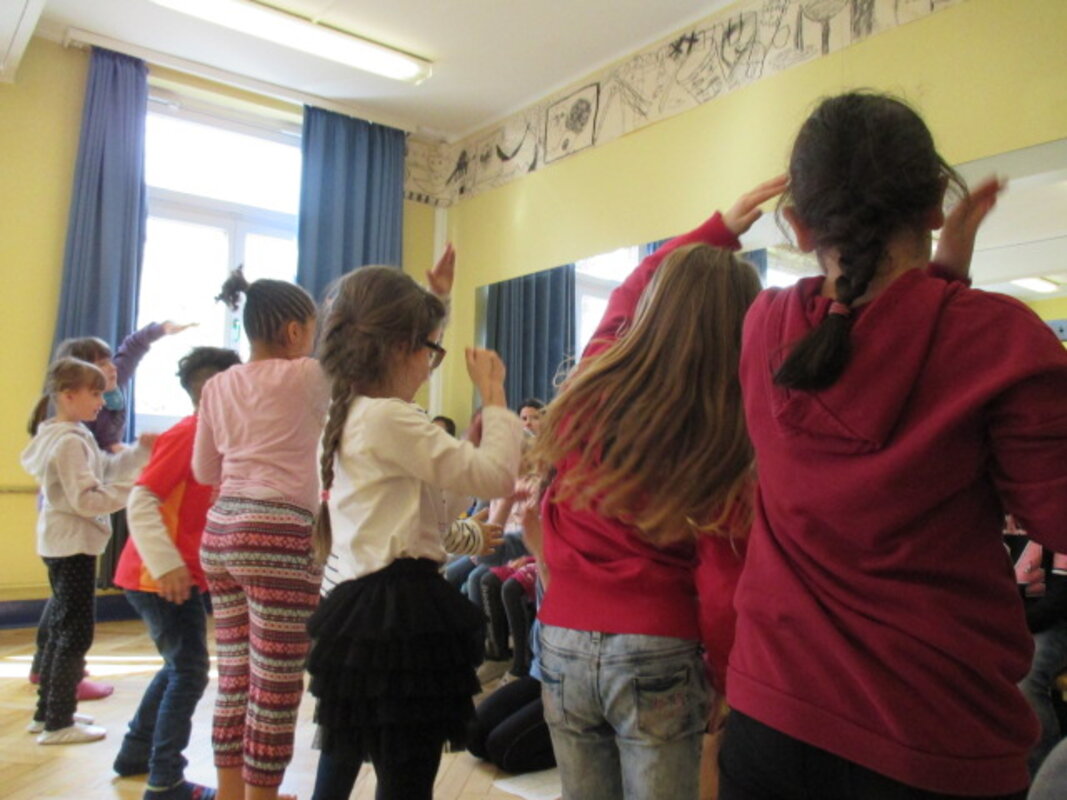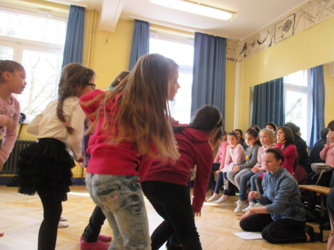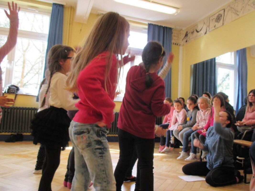 Den zusätzlichen Tanzunterrricht bei Jekits 1 kennen die Erstklässlerinnen und Erstklässler. Wer aber im 2.Schuljahr gerne weiter tanzen möchte, der muss sich hierfür extra anmelden. Was dann in der Tanz-AG gemacht wird, das konnten Eltern und Kinder, die sich für das nächste Schuljahr dafür interessieren bei einem Schnupperangebot am 25.März erleben. Die Zweitklässlerinnen und Zweitklässler zeigten was sie gelernt haben und machten den Kleinen Lust, selber im nächsten Schuljahr mit dabei zu sein.