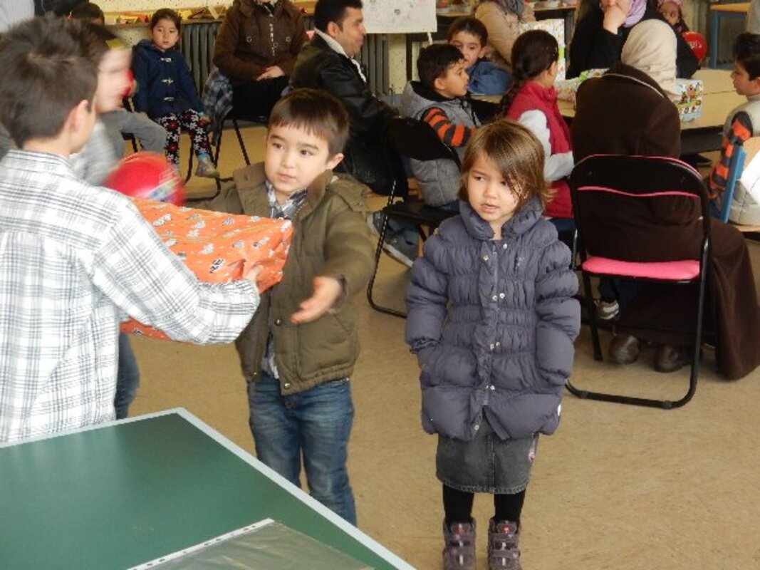 Johannes und Mia überbringen Flüchtlingskindern Geschenke