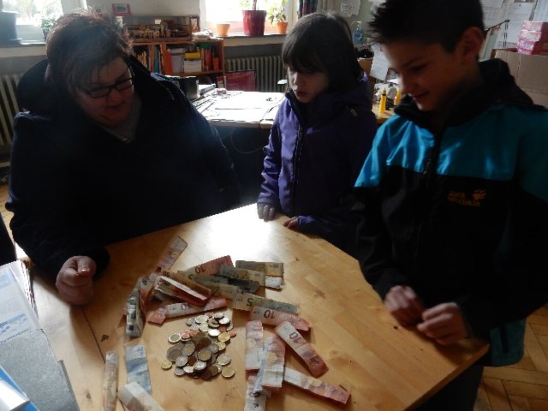 Vorher hatte Johannes zusammen mit seiner Mutter in der Schule die große Spardose geöffnet in der sein gesammeltes Geld aufbewahrt worden war.