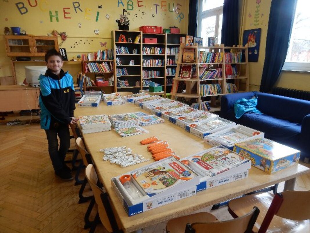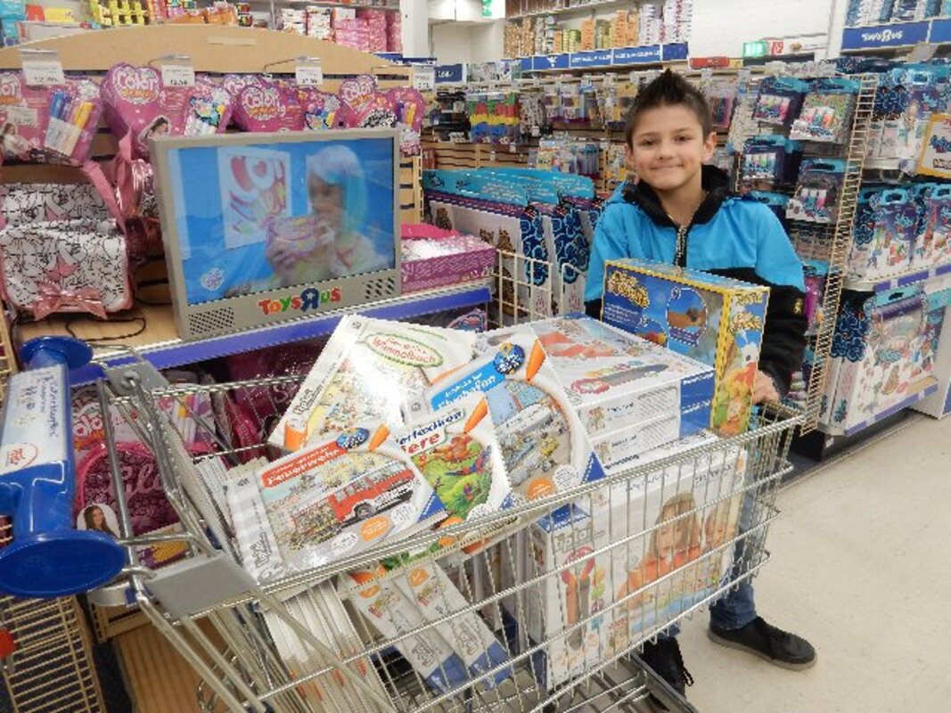 Johannes hatte nicht nur die Idee, er durfte auch mitbestimmen, was und wo gekauft wurde. Gemeinsam mit seiner Schwester Mia waren sie nicht nur beim Einkauf, sondern auch beim Einpacken der Geschenke in der Schule mit dabei. Sie freuten sich auch darüber, dass der Geschäftsführer von toys r us die Spiele und Bücher etwas billiger verkaufte.