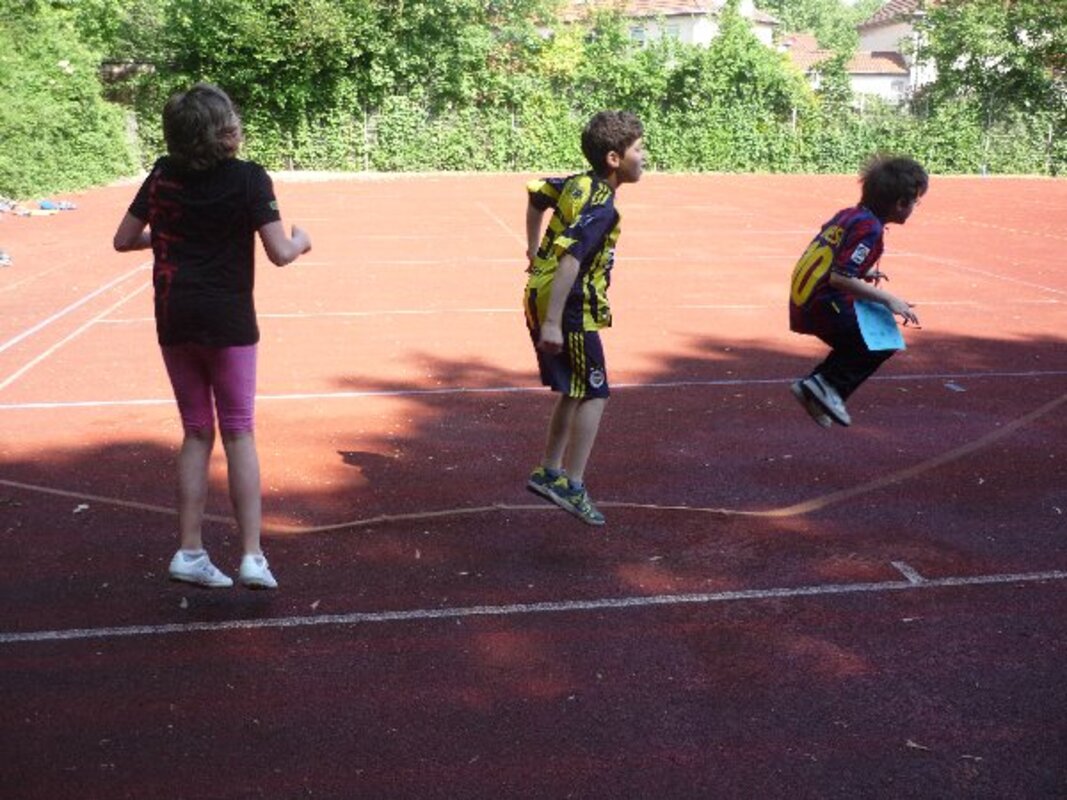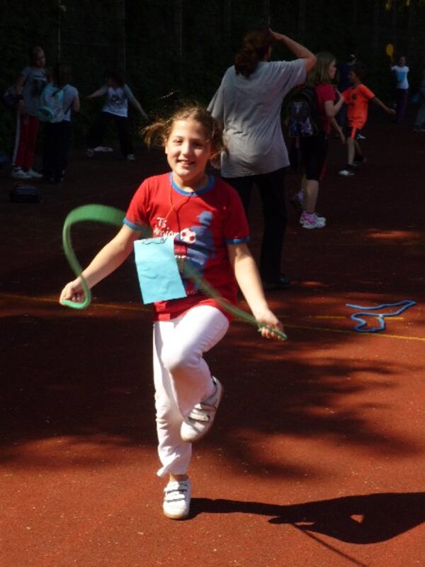 Im Vordergrund stand die Freude am gemeinsamen Erlebnis. Die Lehrerinnen und Lehrer hatten Spielstationen auf der Laufbahn vorbereitet und viele fleißige Eltern halfen damit der Vormittag reibungslos klappte.