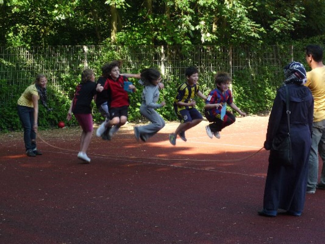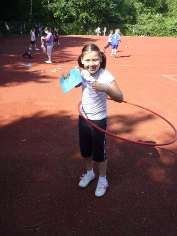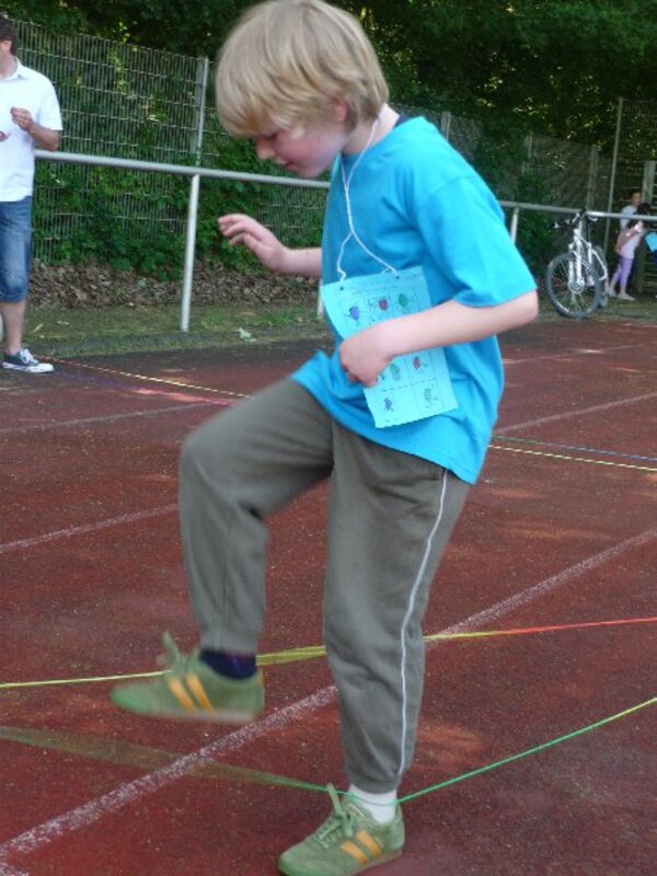 Nicht mehr ganz so heiß wie die ersten Tage im Mai, aber warm und trocken und Sonnenschein. Bei so schönem Wetter mit meistens fröhlichen, machmal auch aufgeregten Kindern spielten, hüpften, rannten und turnten Groß und Klein beim Spiel- und Sportfest auf der Bezirkssportanlage im Driesenbusch.