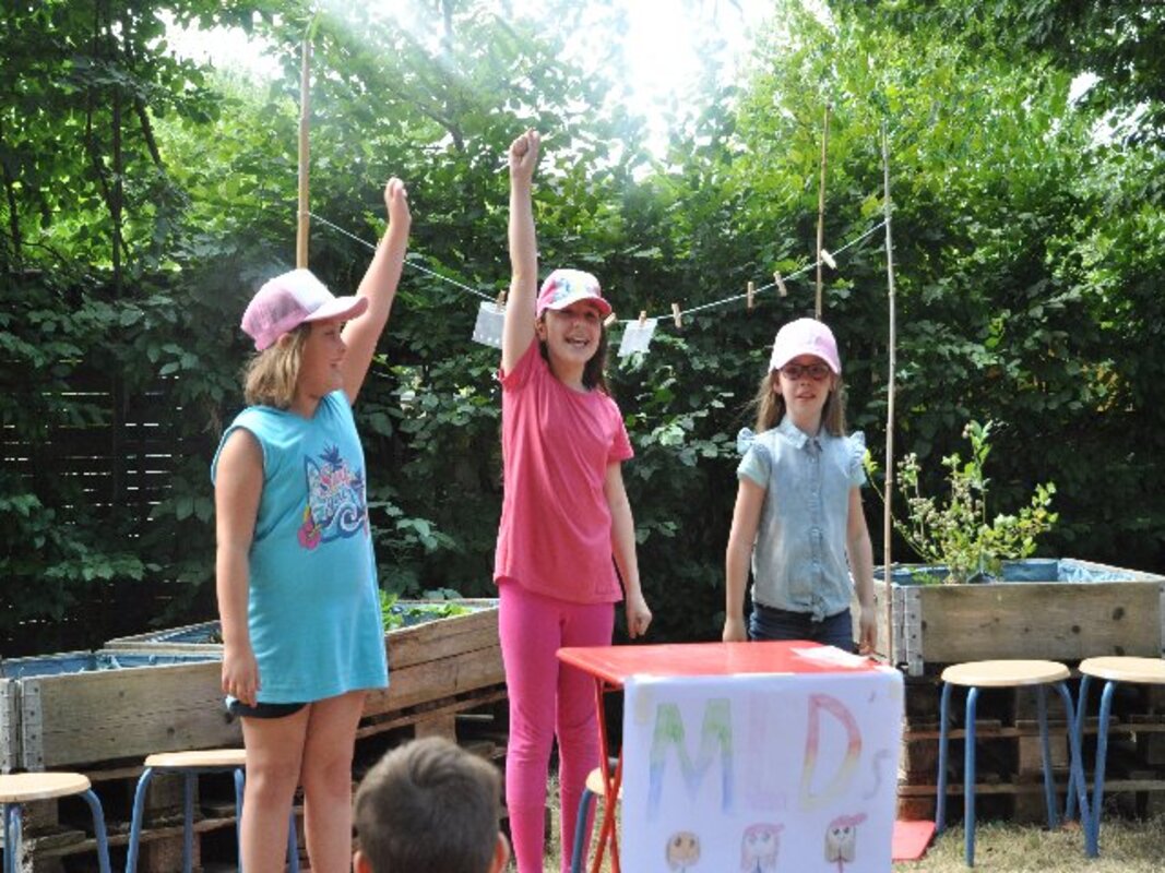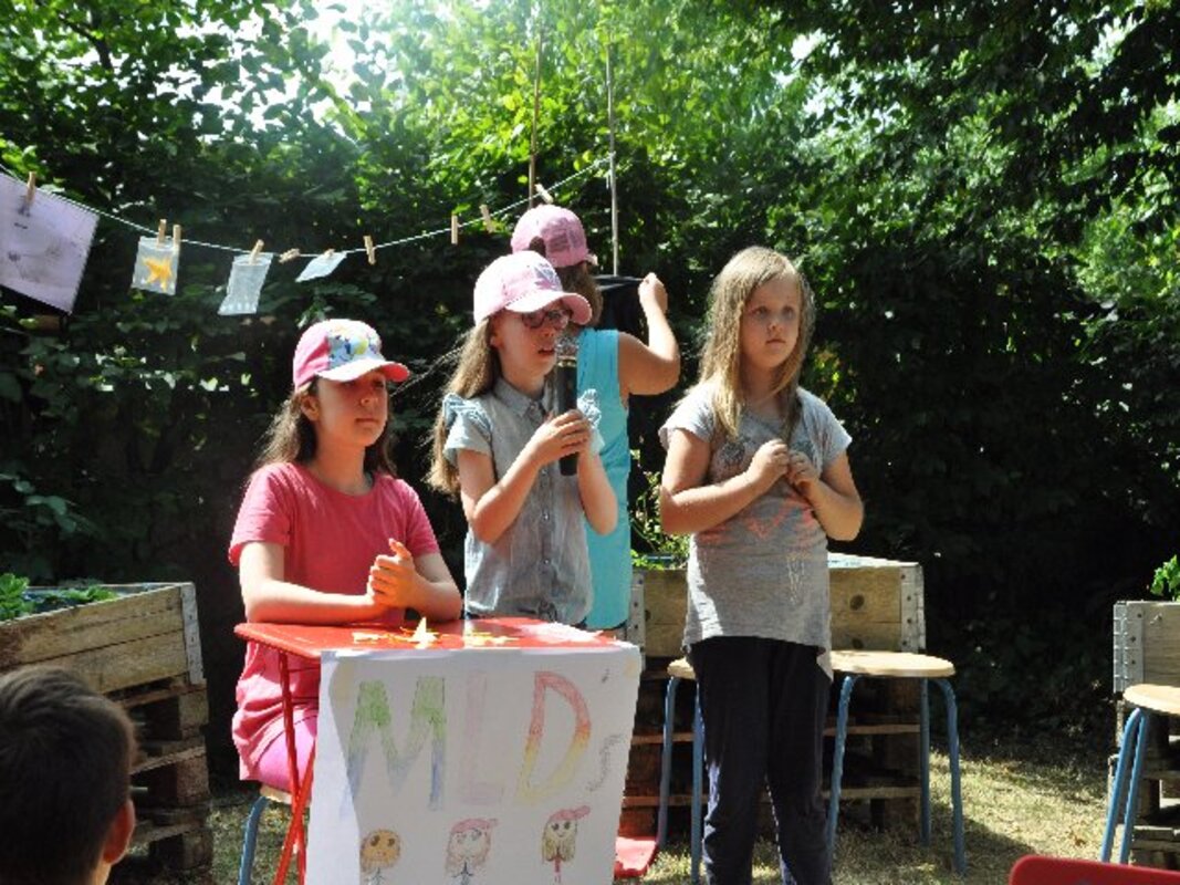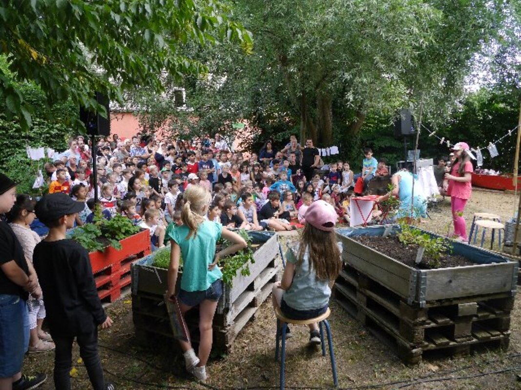 Die Ergebnisse wurden beim Akki-Somemrfest am letzten Junimittwoch präsentiert. Viele Eltern und Mitschüler aber auch neue Schulkinder nutzen die Gelegenheit im Schulgarten und auf dem Schulhof zuzuschauen.