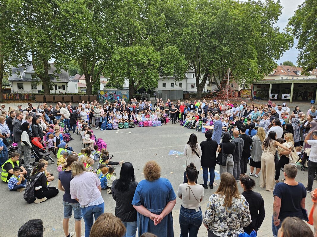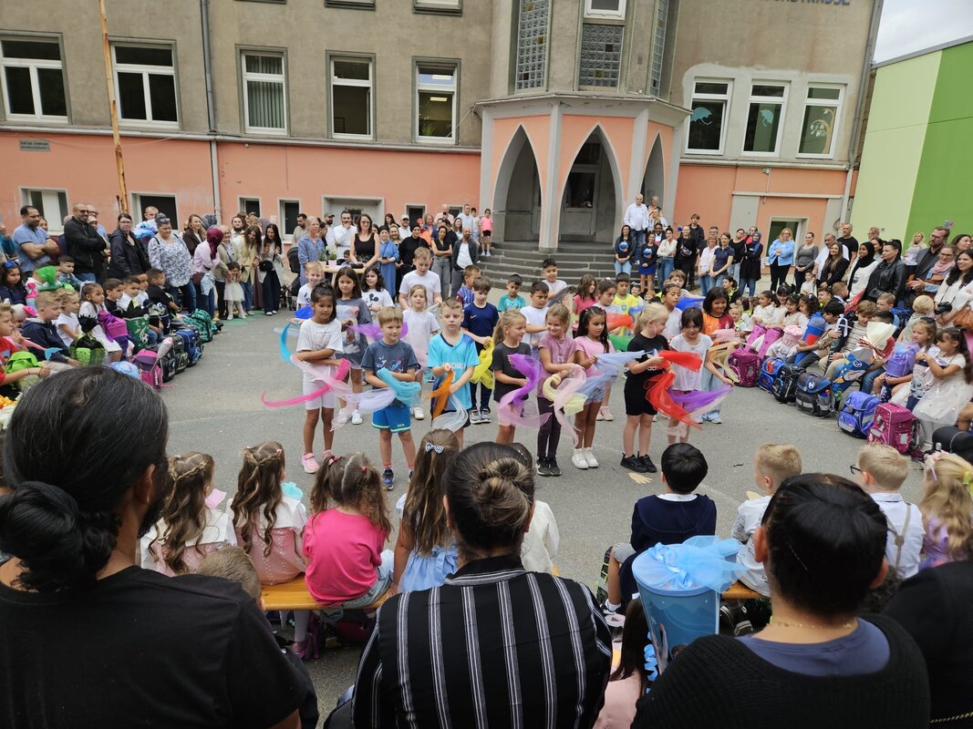 Am 28.08.2025 wurden in unserer Schule 67 Erstklässler eingeschult. Nach einer kleinen Einschulungsfeier auf dem Schulhof haben alle Kinder ihre erste Unterrichtsstunde in ihrer Klasse erlebt. Erstmals seit mehreren Jahren konnte eine Einschulungsfeier wieder ohne Großbaustelle auf dem Schulhof stattfinden.
