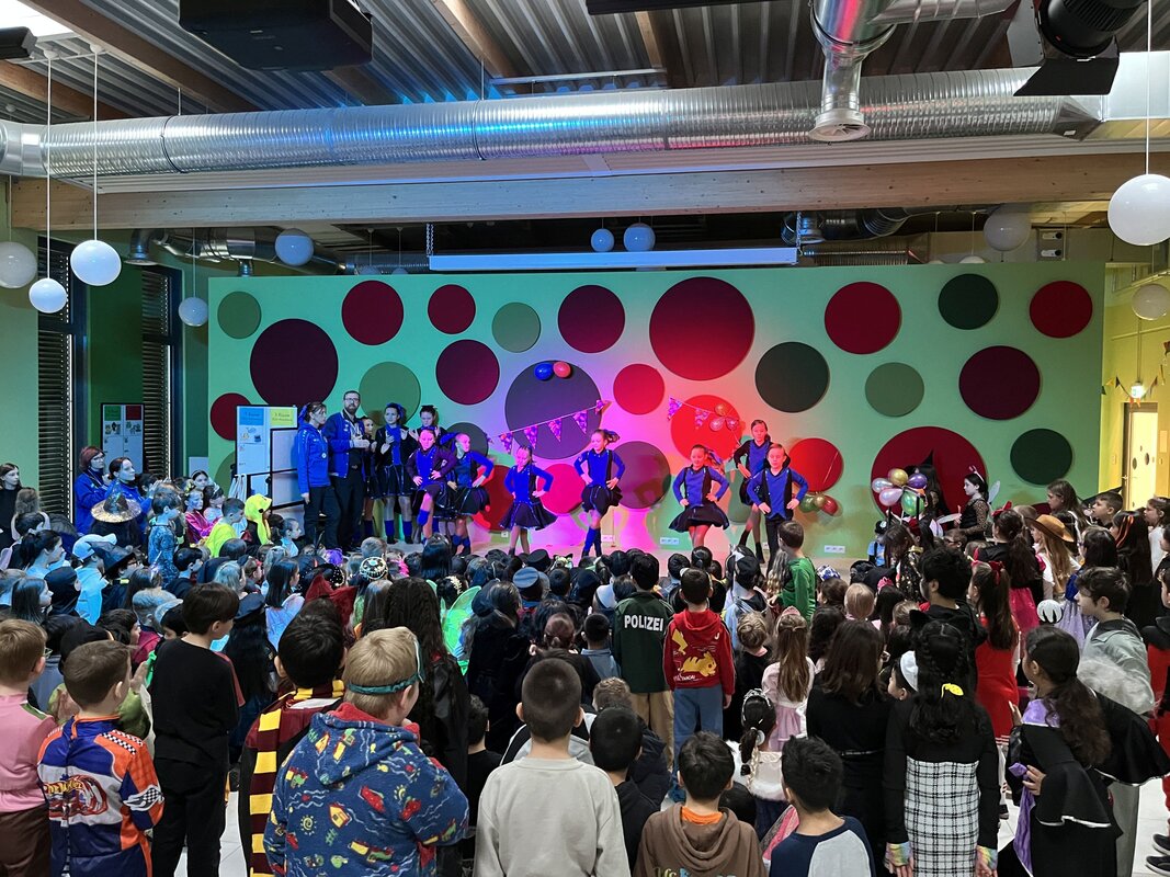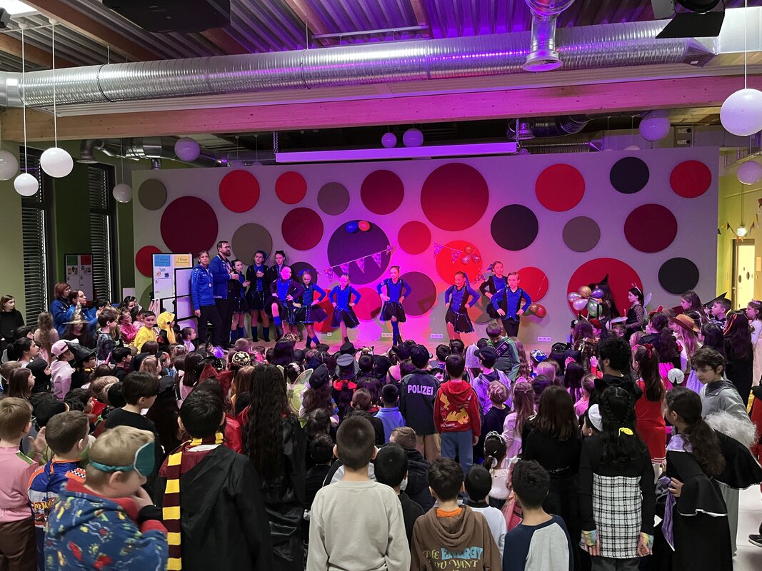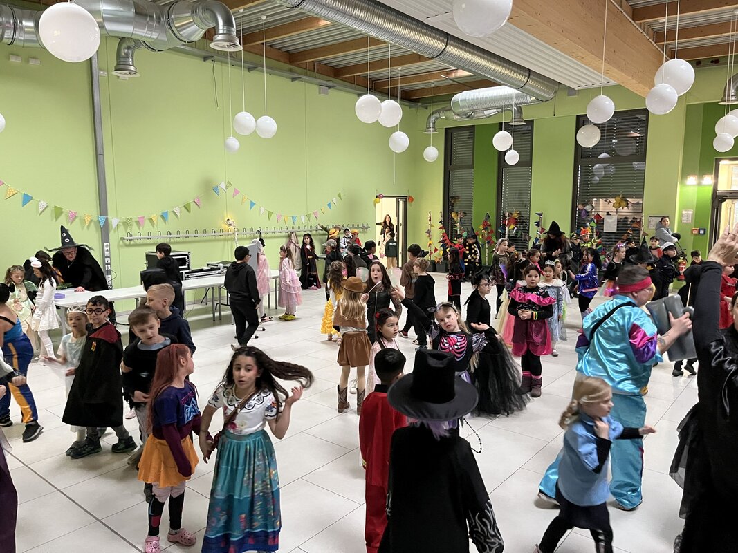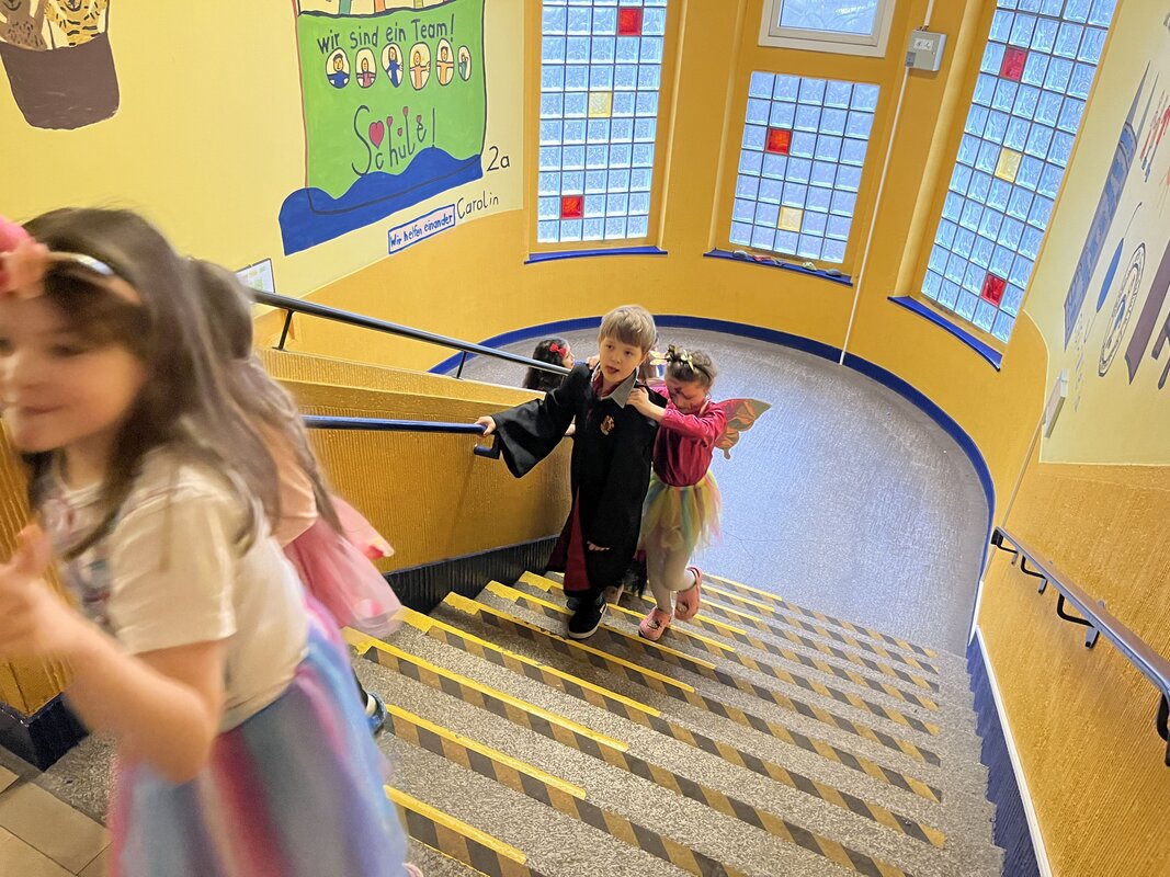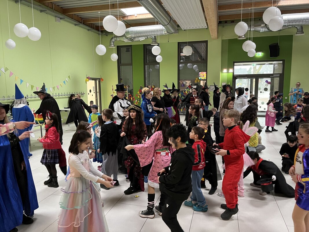 In diesem Jahr konnte Karneval am 16.02.2023 wieder ohne Corona-Einschränkungen in den Klassen gefeiert werden. Die Kinder wurden schon morgens vor Schulbeginn mit Musik auf dem Schulhof begrüßt. Es gab an dem Tag eine Discopause, eine Polonaise durch das Schulgebäude und über den Schulhof sowie einige gemeinsame Tänze auf dem Schulhof. Die Kinder und Erwachsenen hatten alle viel Spaß.