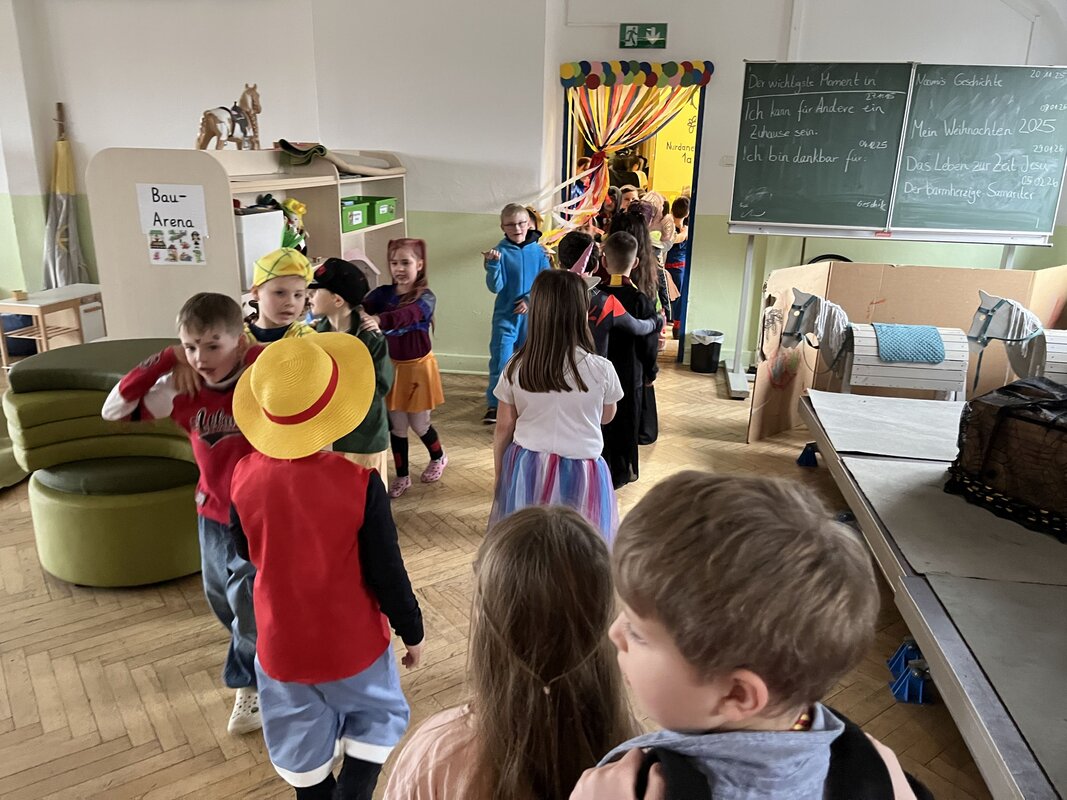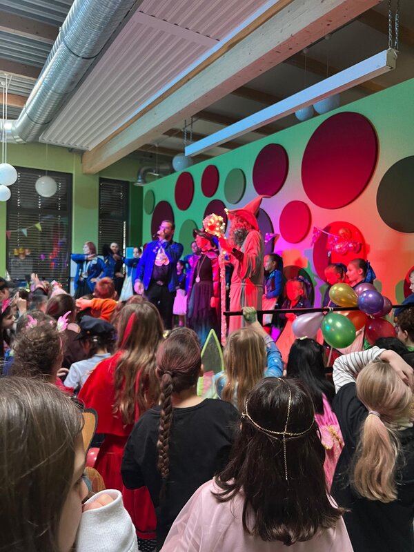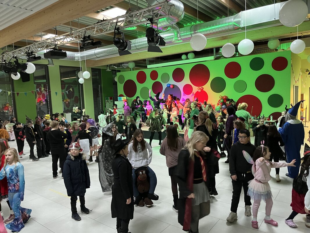 Auch in diesem Jahr haben wir am 08.02.2024 gemeinsam Karneval gefeiert. Viele Kinder war unterschiedlichst verkleidet und auch das Wetter hat noch mitgespielt. Die große Polonaise und die Abschlusstänze konnten auf dem Schulhof stattfinden. In der Aula trat eine Clownin auf, die jeweils für die Klassenstufen 1/2 und 3/4 ein kleine Programm gezeigt hat.