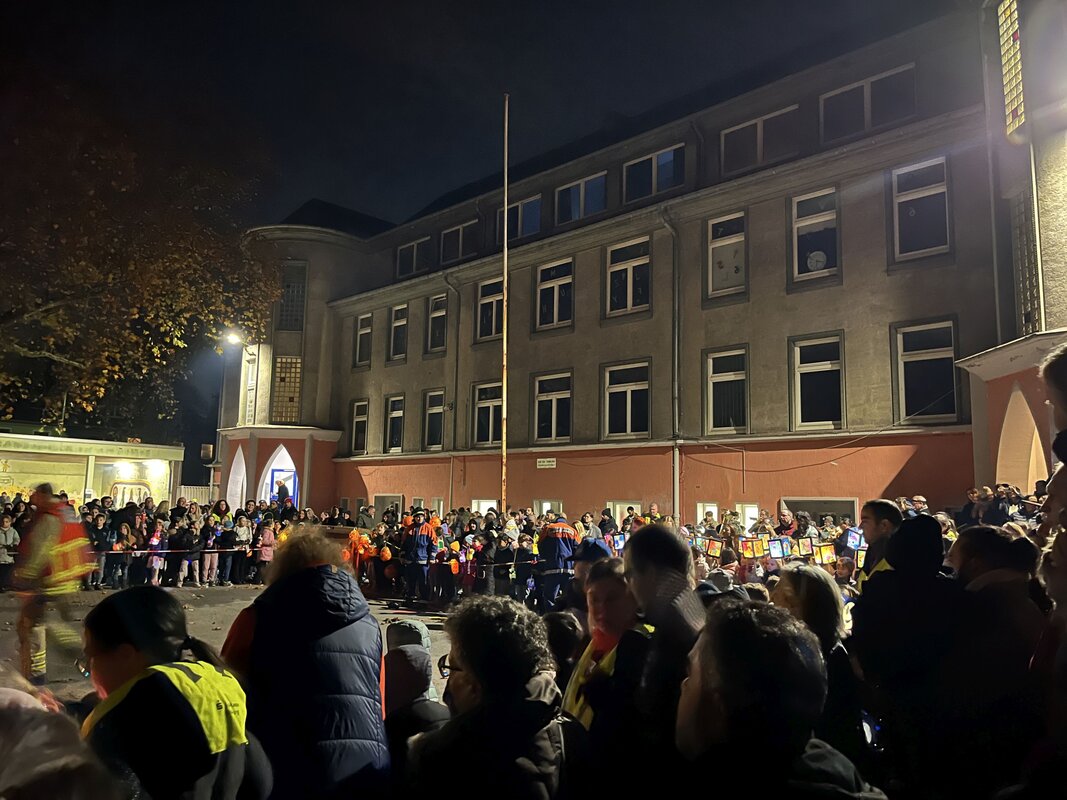 Am 13.11.2024 fand der diesjährige Martinszug statt. Aufgrund des kleinen Schulhofs dieses Jahr ohne Verkaufsangebot und ohne Eltern auf dem Schulhof. Die Stimmung unter den Kindern war dennoch toll und die Atmosphäre aufgrund des großen Feuers absolut toll. Dies kann man auf den Fotos sehen. Unterstützung bekamen wir wieder von zahlreichen Helfern der Freiwilligen Feuerwehr sowie der Jugendfeuerwehr.