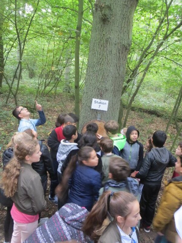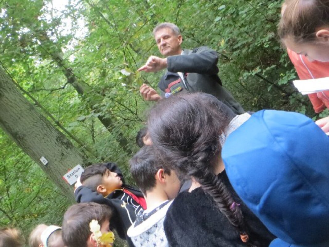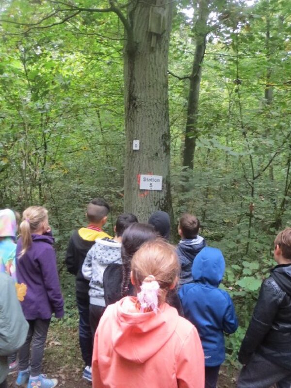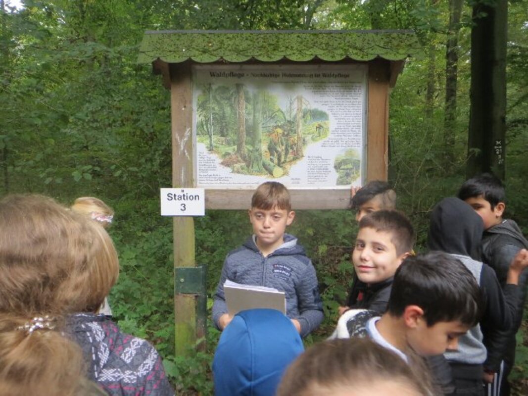 Zum Herbstanfang 2017 waren unsere drei 4.Schuljahre mit den Forstleuten im Wald unterwegs. An 13 Stationen gibt es auf dem Waldlehrpfad viel zu entdecken. Da geht es um die Bedeutung des Lebensraumes Wald für Mensch und Tier, um die Bestimmung dess Altes von Bäumen, um die Waldpflege, um die Lebenräume von Spechten, Feldhasen oder Wildkaninchen, um allerlei Käfergetier und die Vögel, die davon leben.